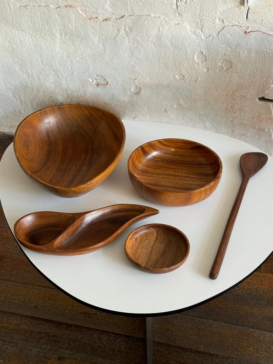 Collection of Vintage Teak and Rosewood Serving Bowls and Spoon