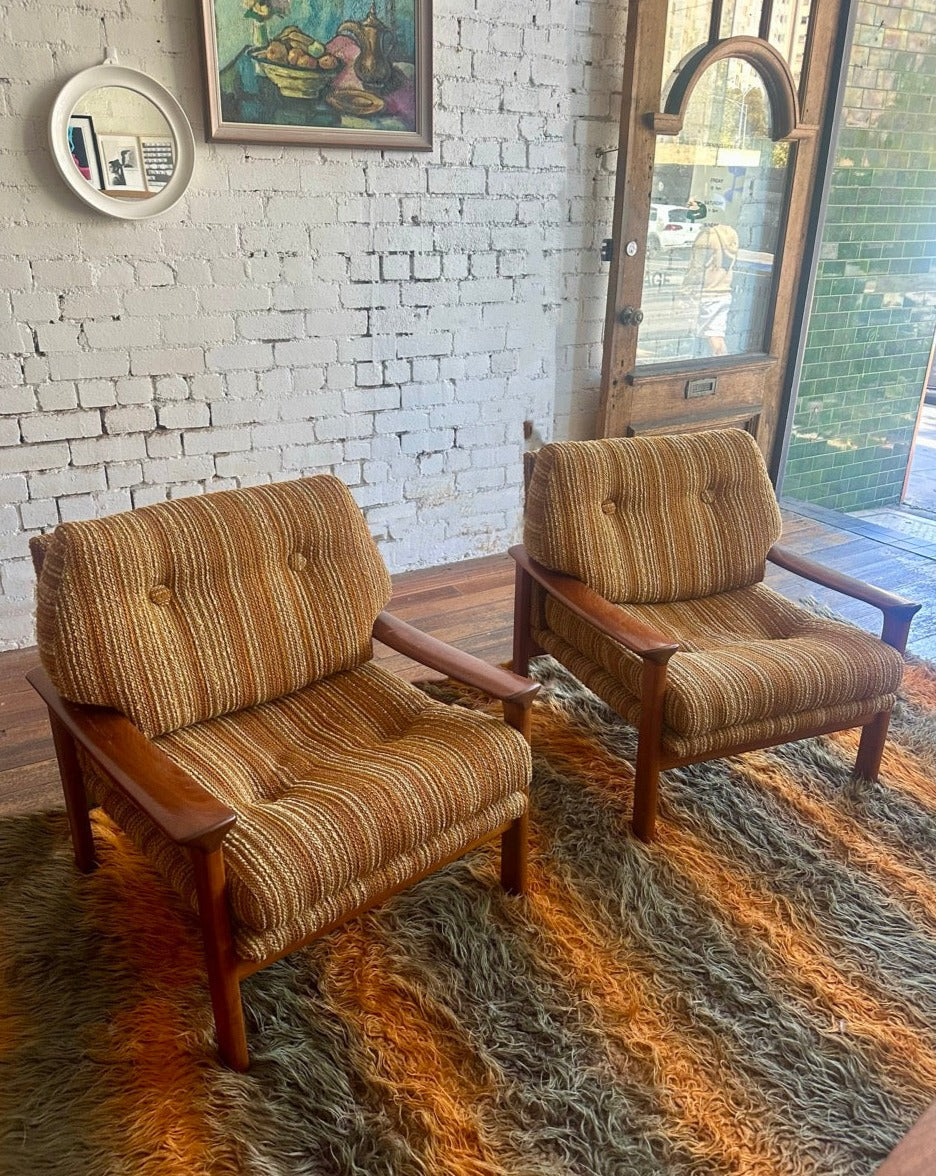 Teak frame and original wool upholstery.