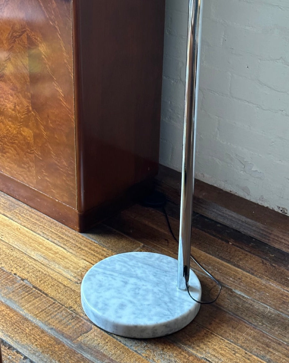 Arc floor lamp with marble base, perspex shade and foot switch