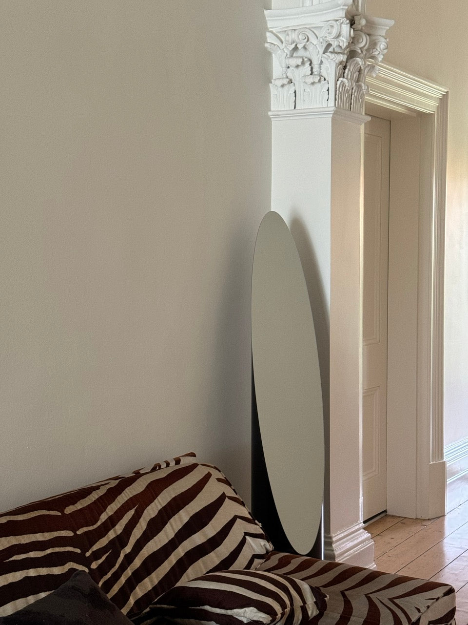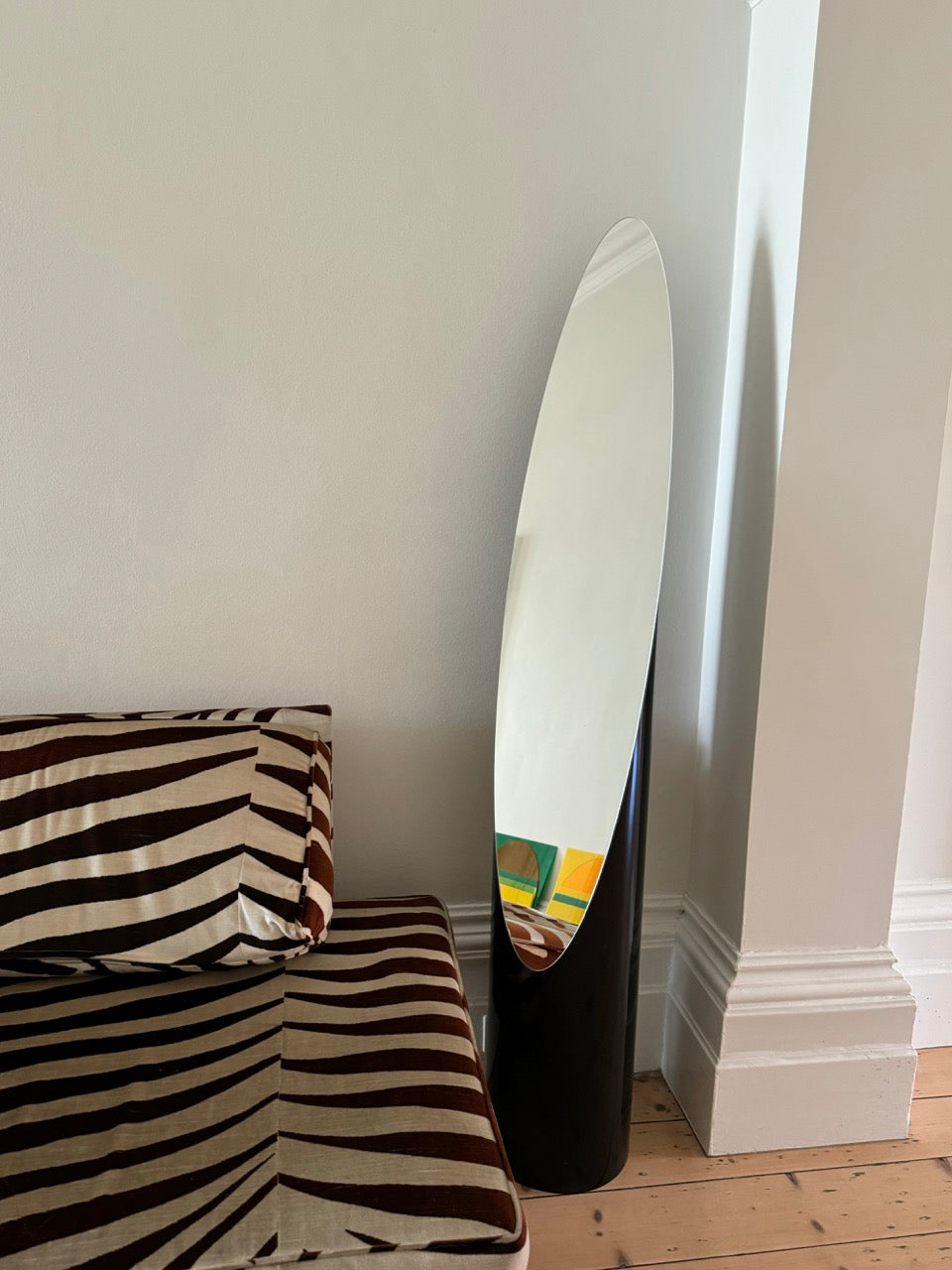 Stunning Roger Lecal design with an elliptical mirror in satin black finish.
