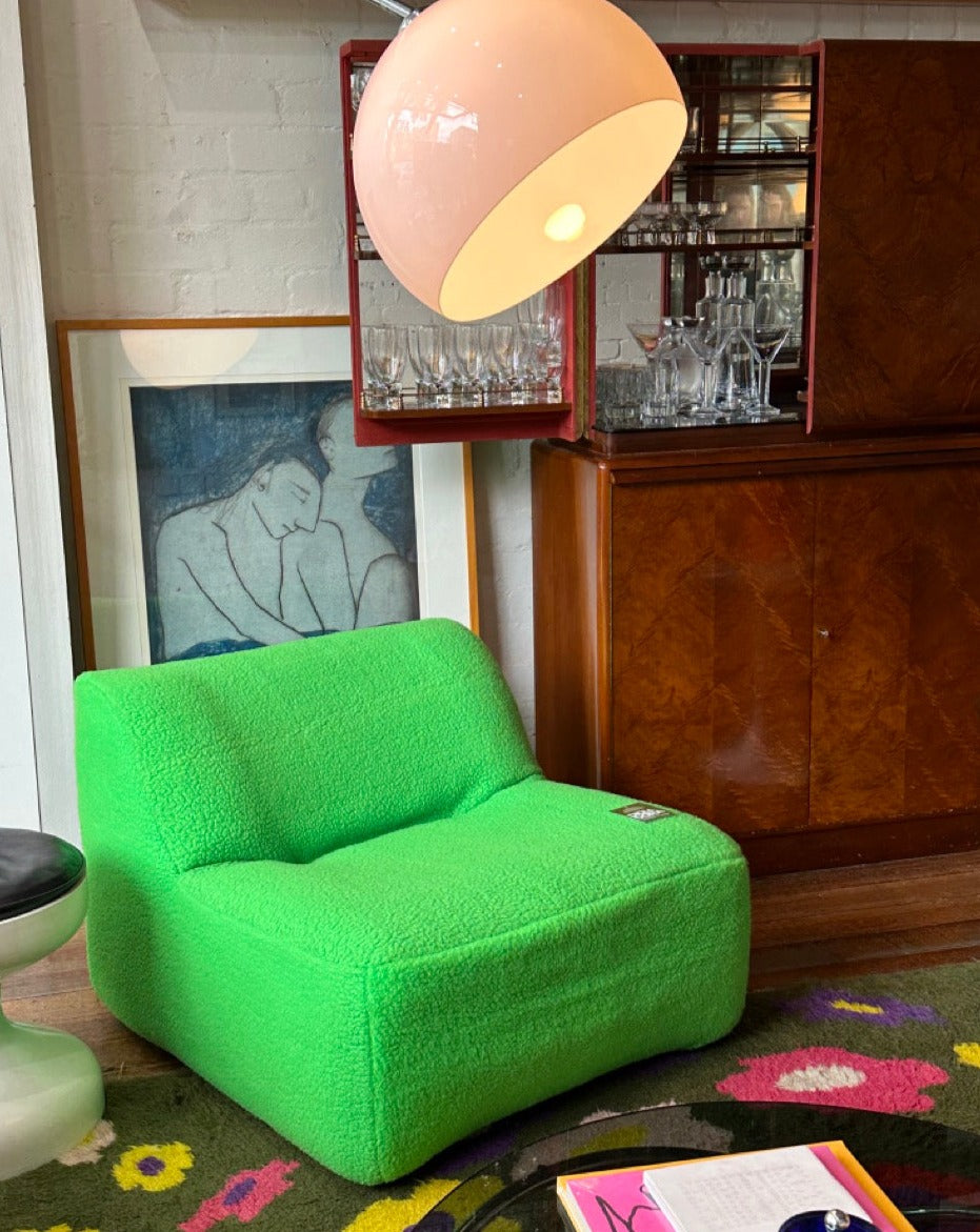 Designed in Australia in the 70s and 80s, this piece has been recovered in a green tufted material.