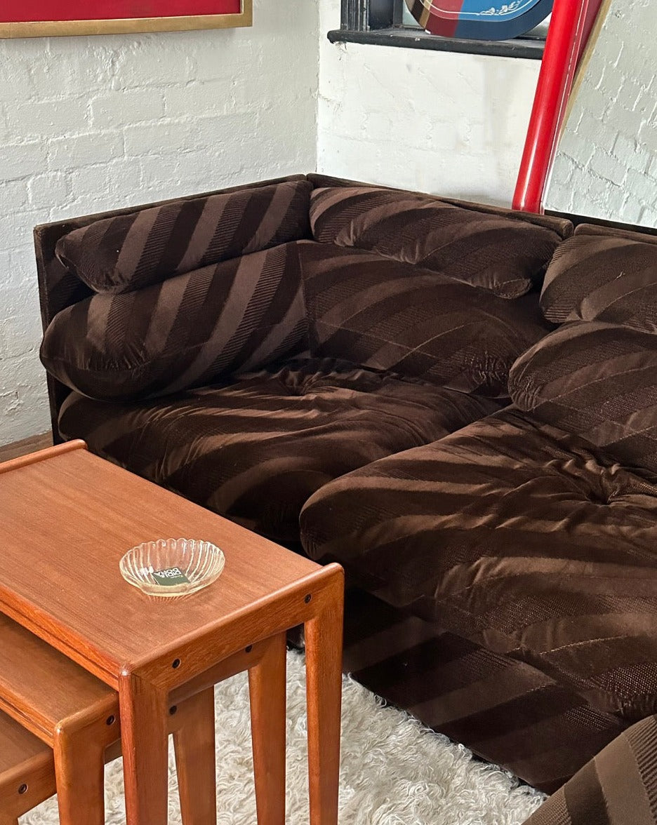 Vintage Brown Striped Velvet Modular Sofa