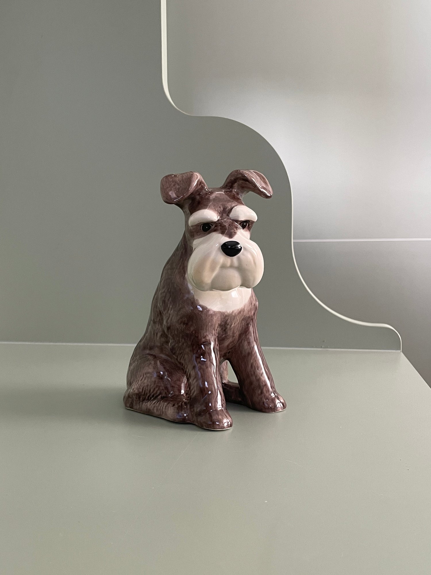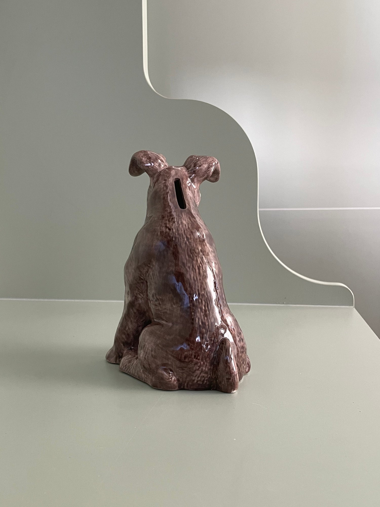 Great condition. The ceramic dog is used as a money box with a coin slot on the back as shown in photo 4. Not noticeable unless sculpture is facing backwards.