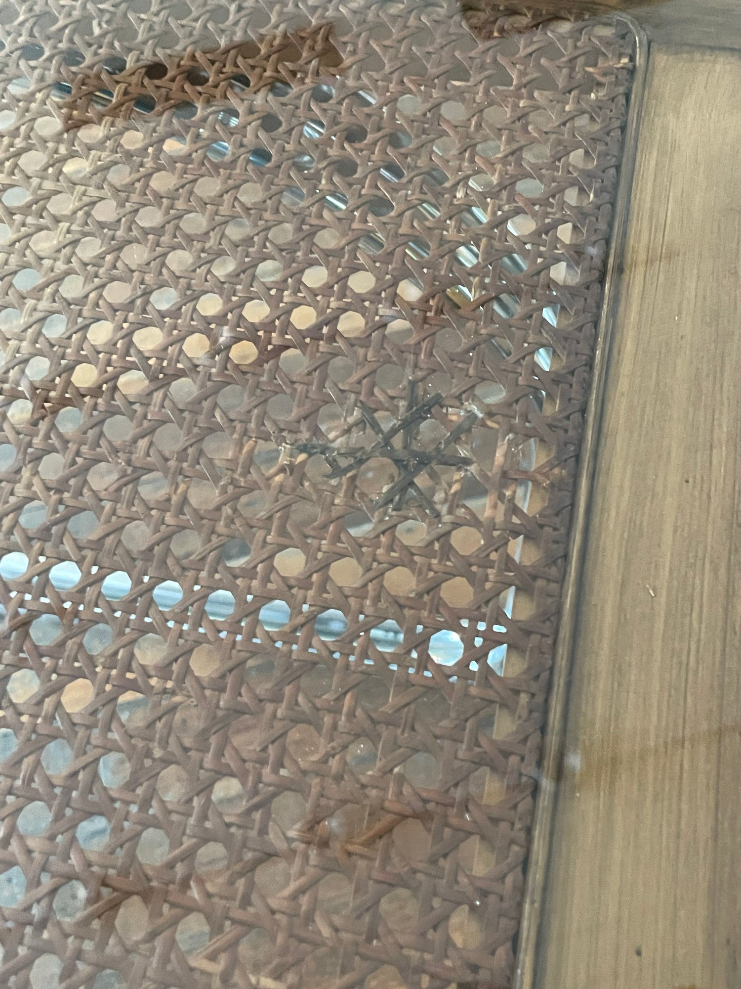 This is a stunning piece, however there is some loose rattan (as shown in the photo) and a dark spot on the table near the cross structure. With the glass on, these imperfections are not as noticeable and does not take away from overall aesthetic.