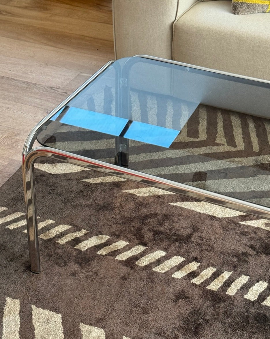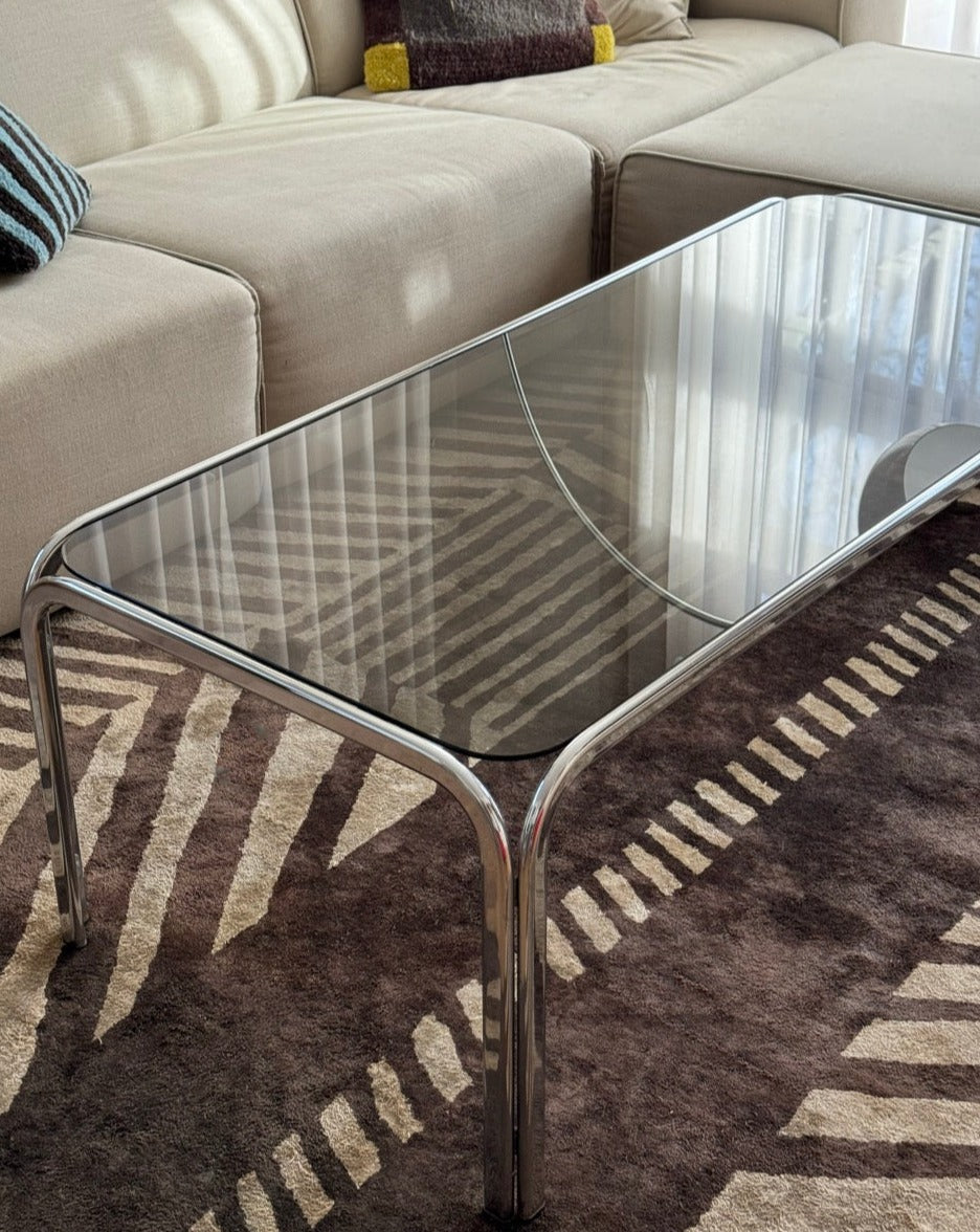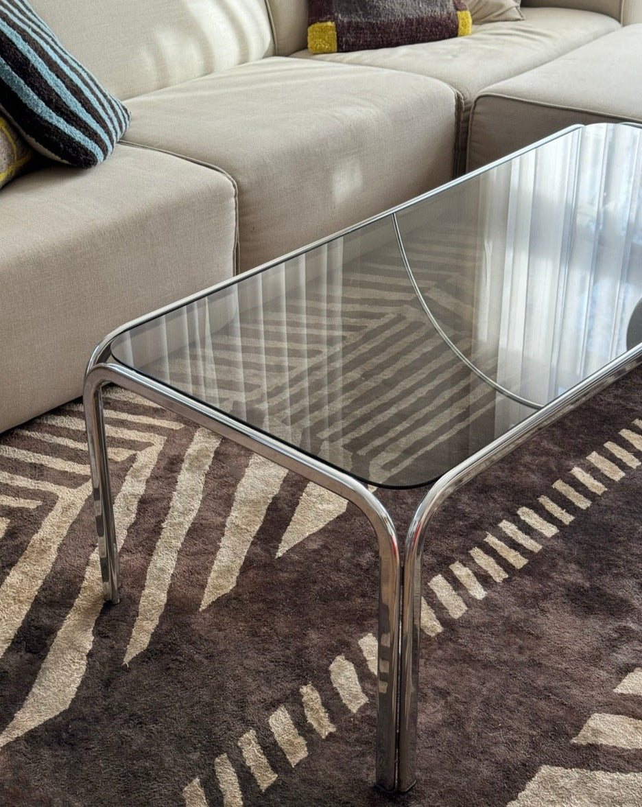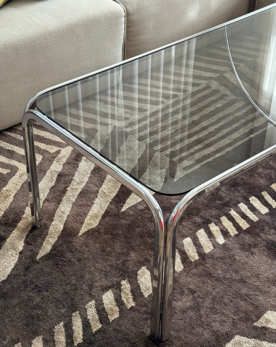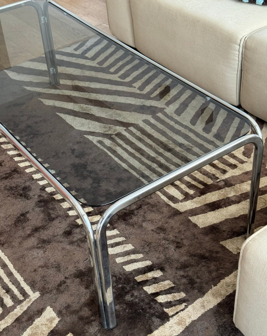 Vintage Chrome and Smoked Glass Coffee Table