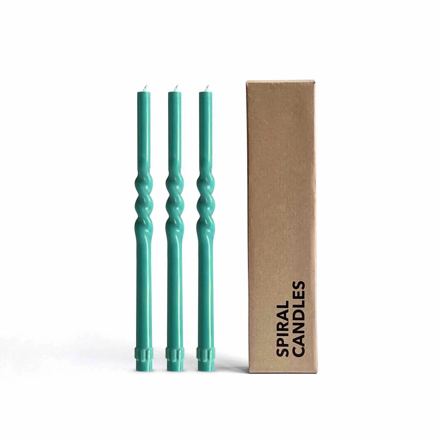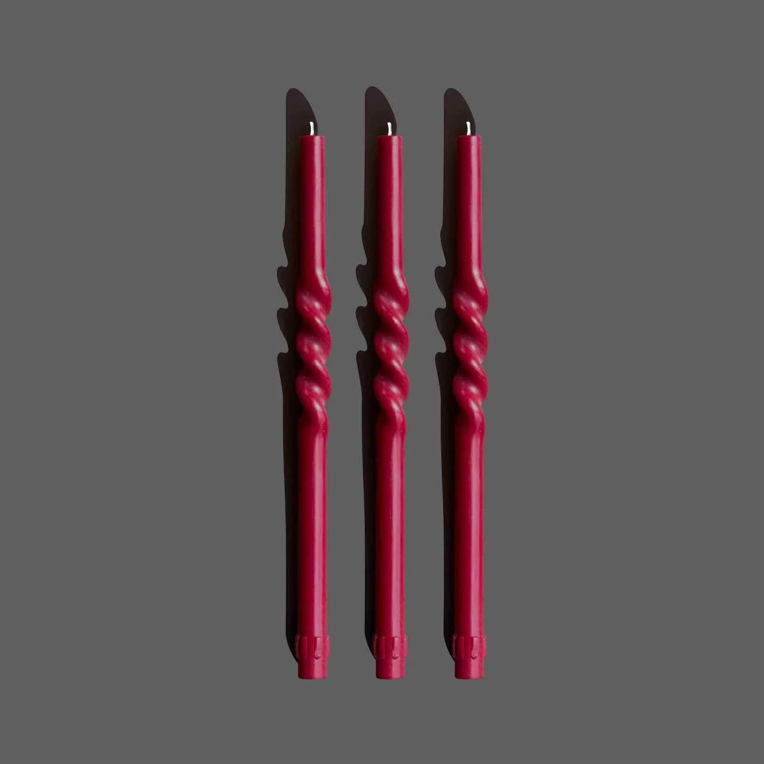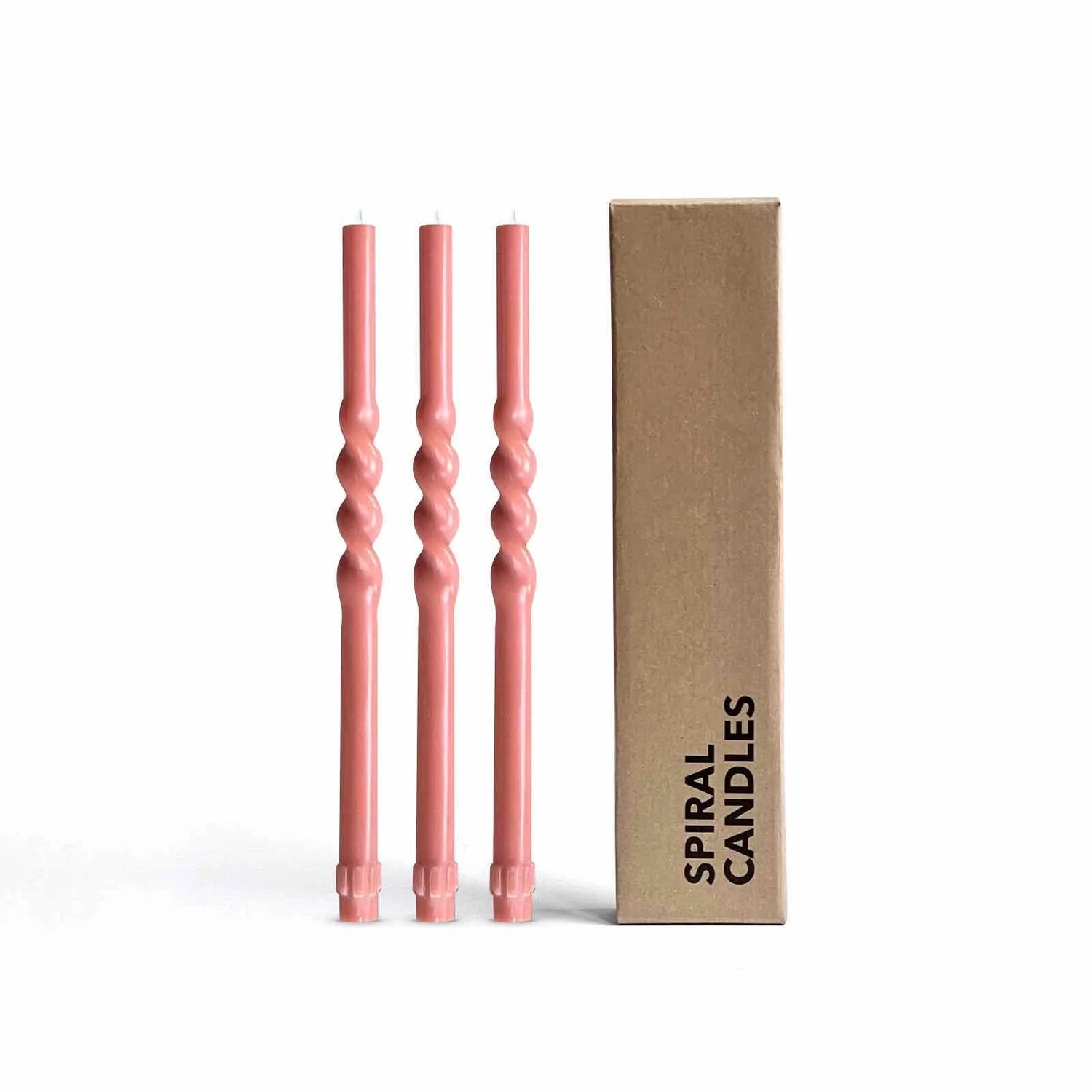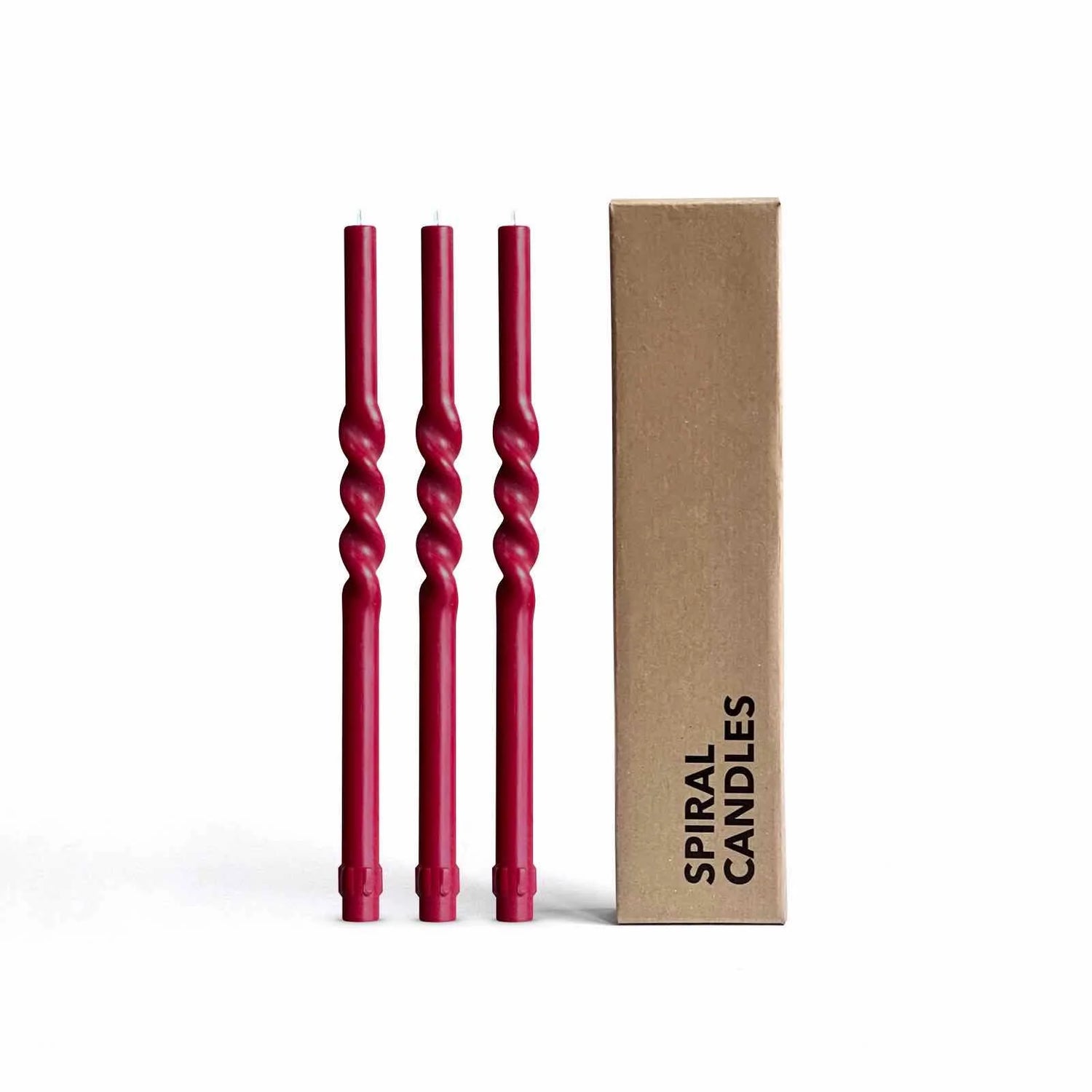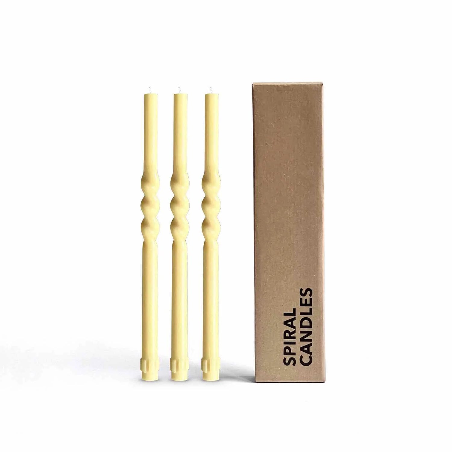 Spiral tapers come in a gift box as a set of 3. Made from natural coconut wax, these elegant dinner candles fit most candle holders, thanks to the ribs at the base of the candle.