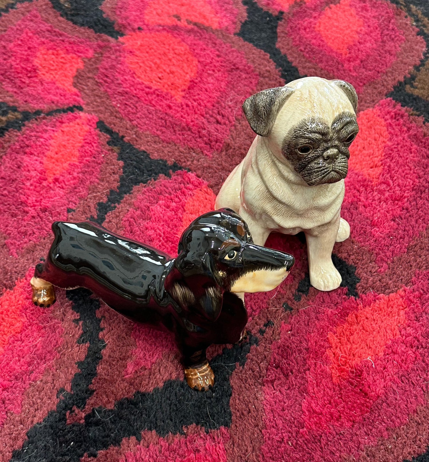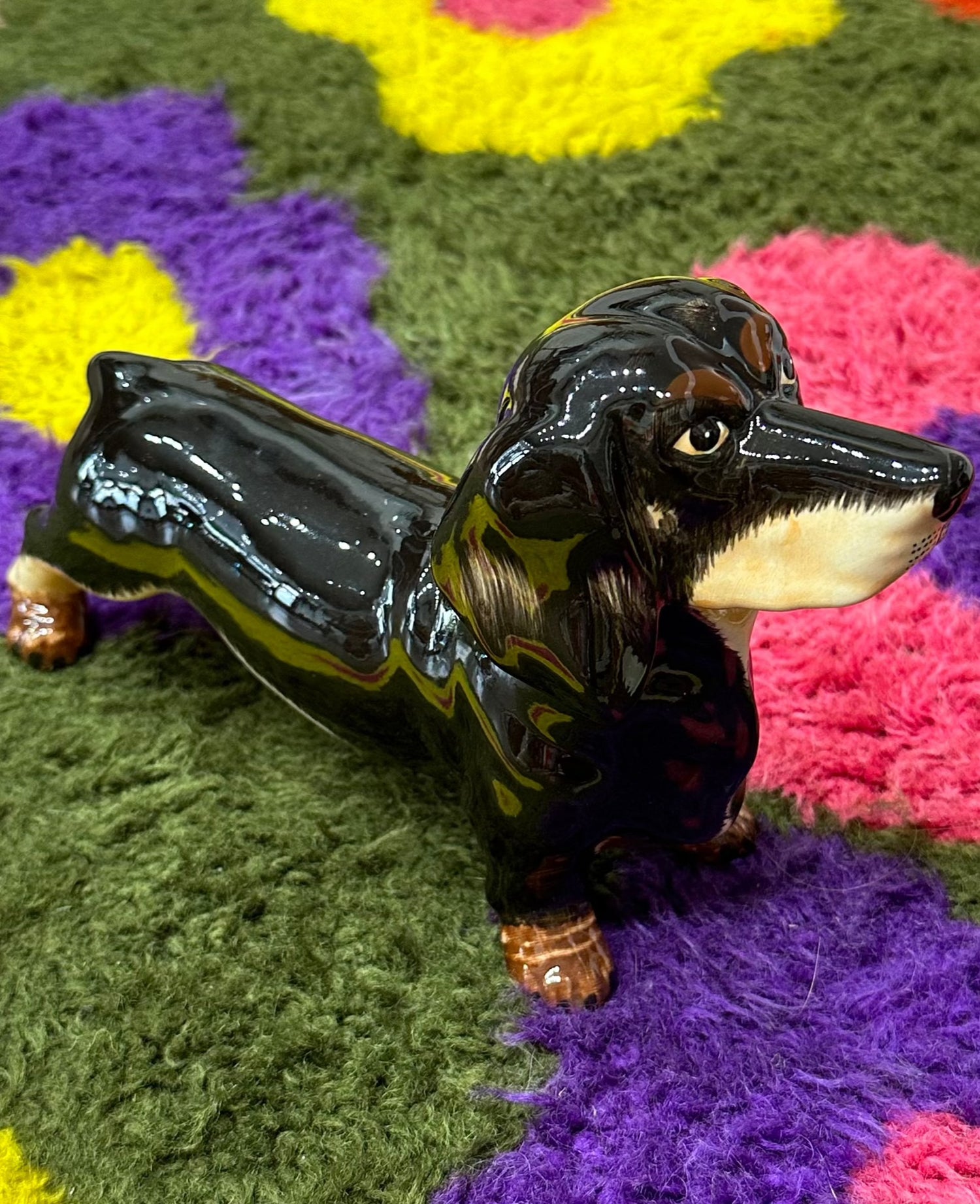 Perfect condition. This ceramic dog is used as a money box with a coin slot on the back. Coin slot is not noticeable unless sculpture is facing backwards.