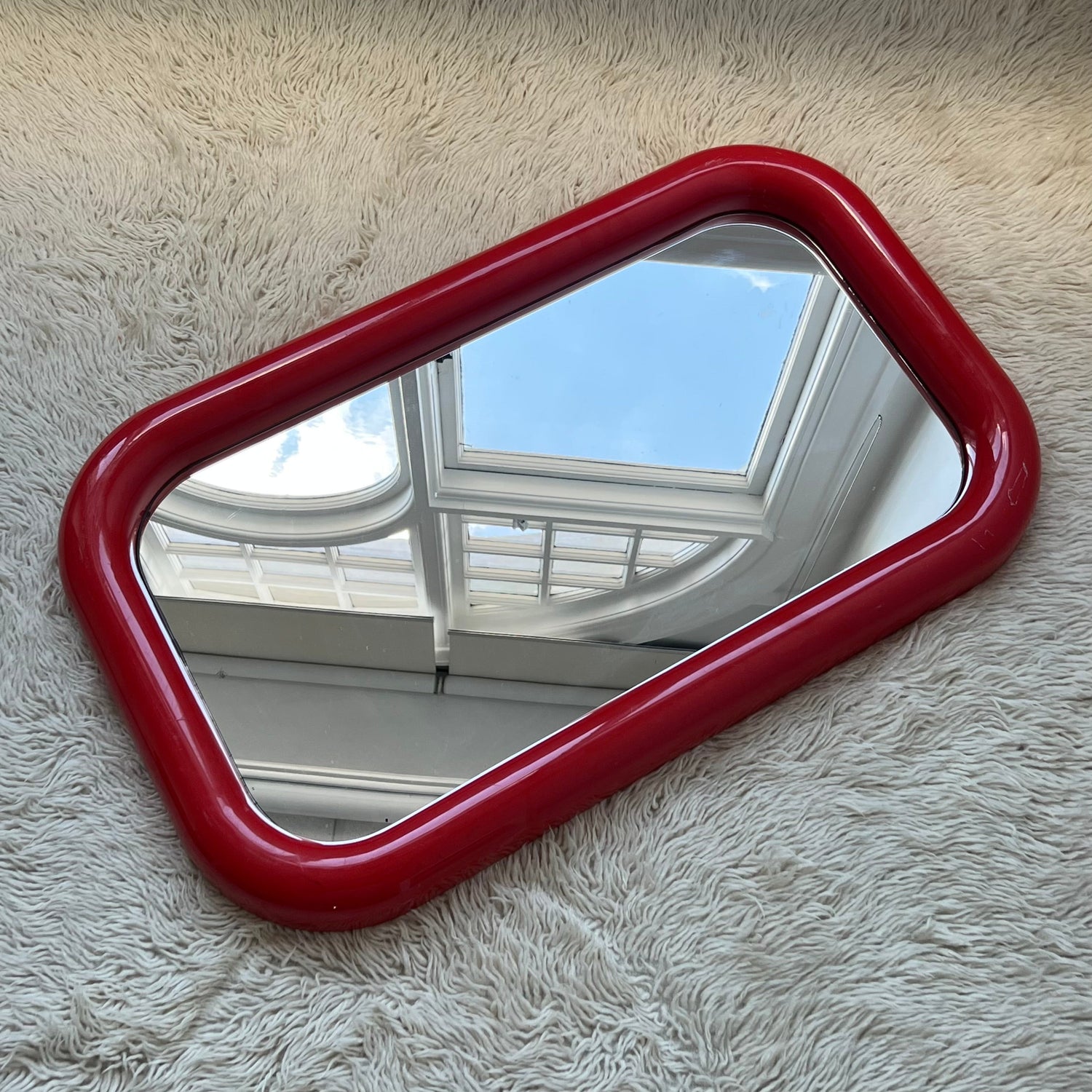 Red Plastic Bulbous Mirror