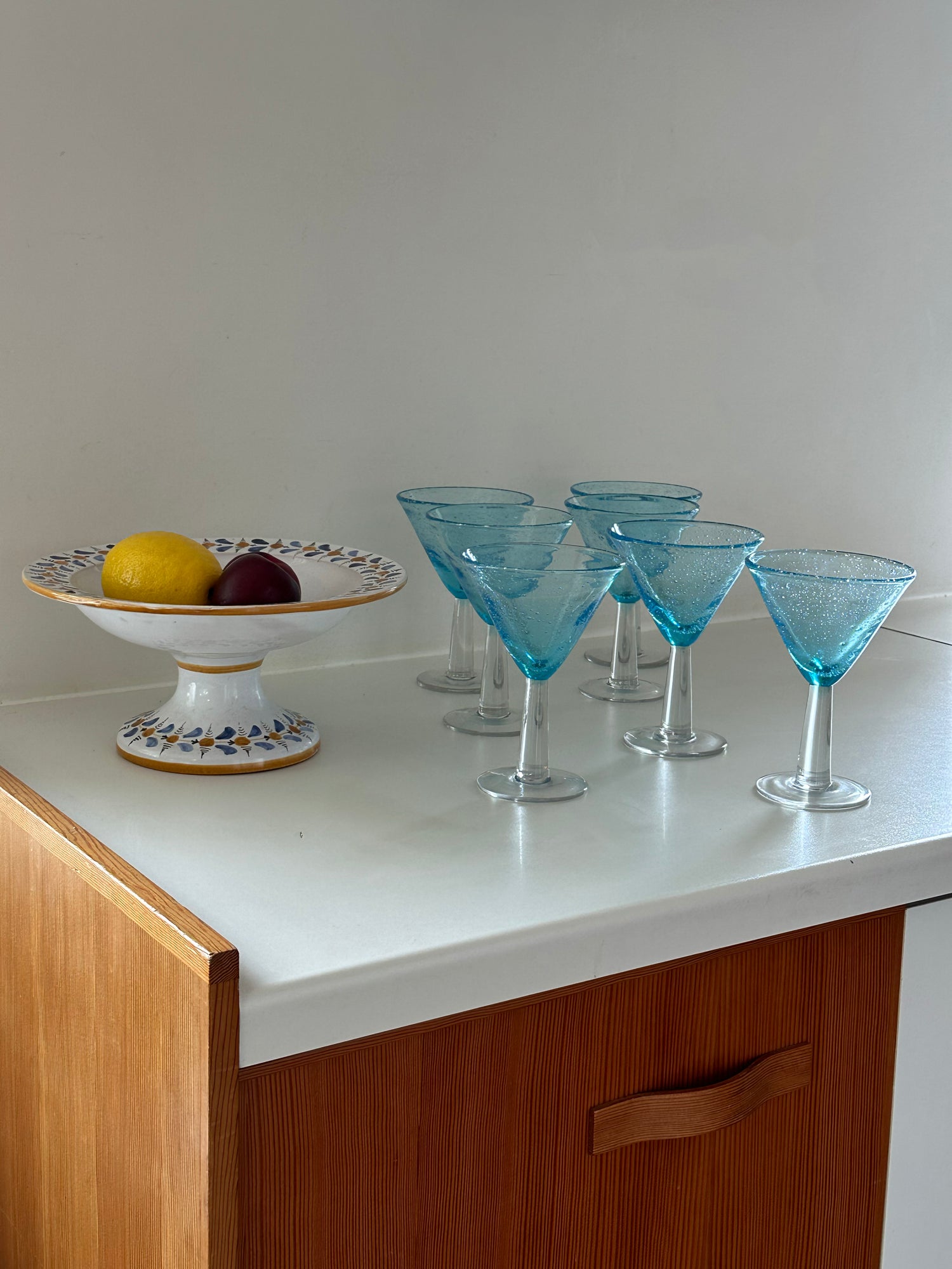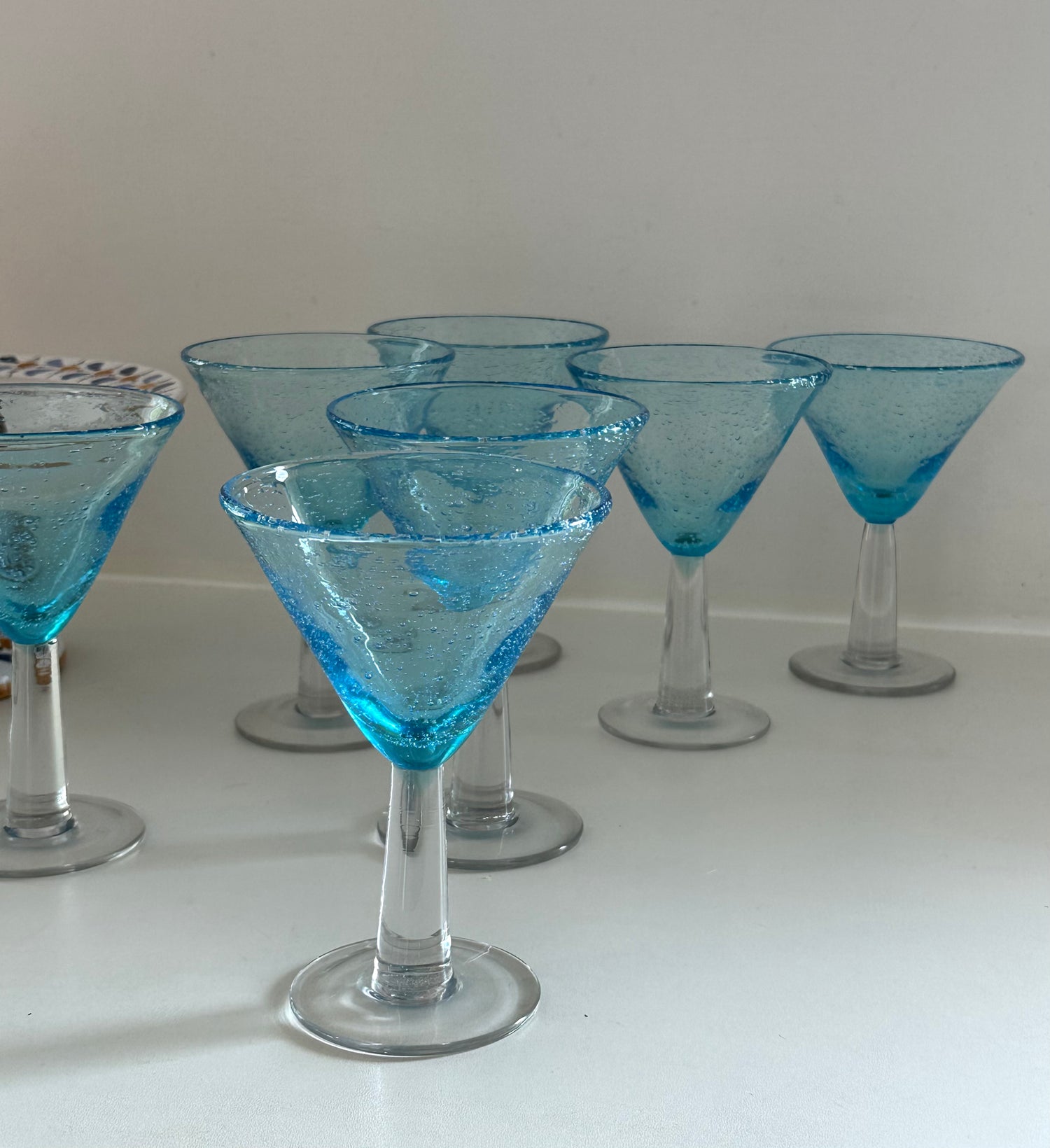 Blue and clear glass cocktail glasses x 7