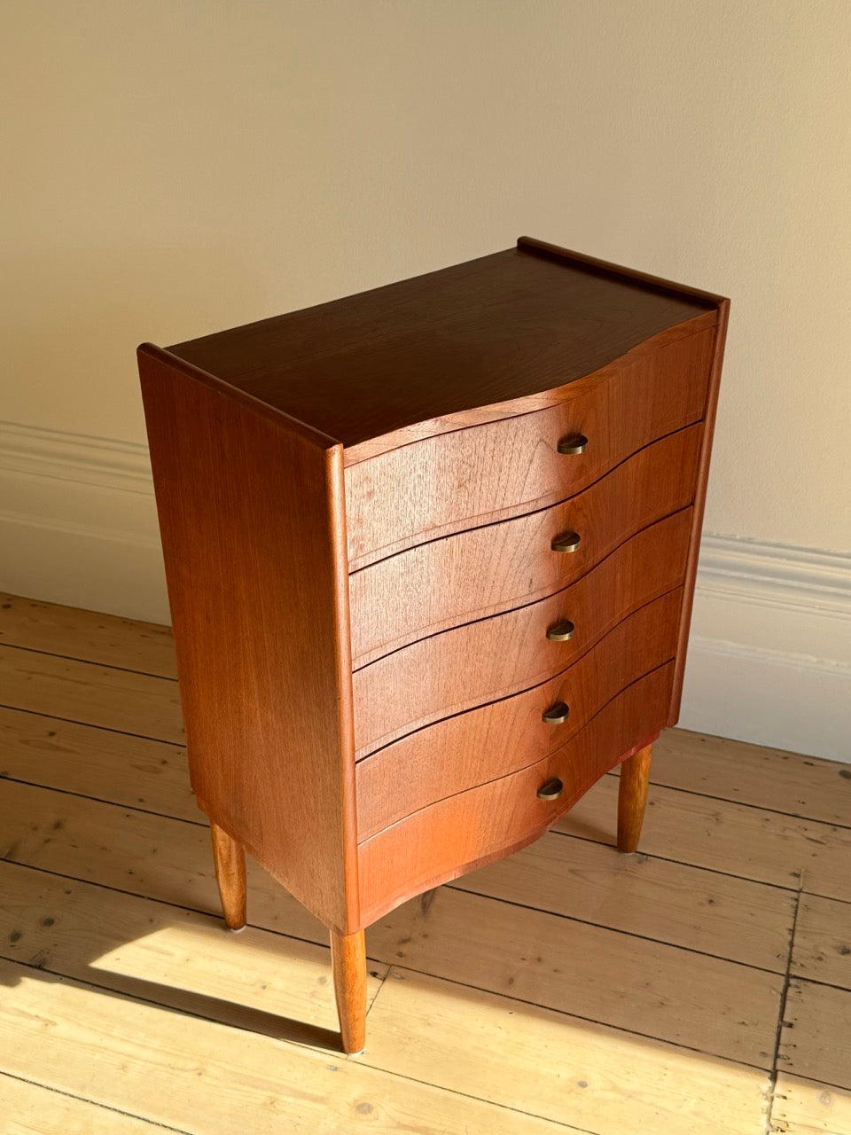 Serpentine Teak Chest of Drawers, Denmark, 1960s