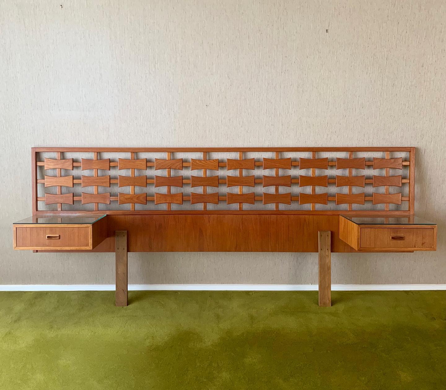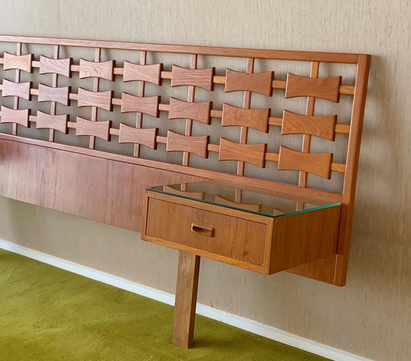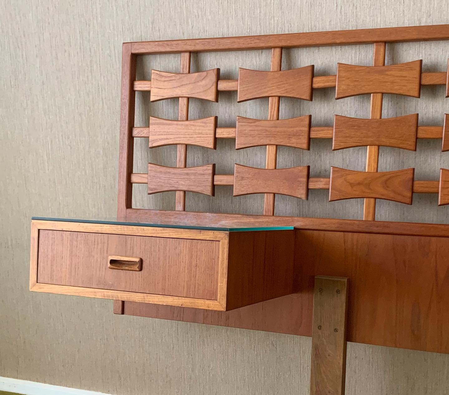 Custom Made Teak Bed Head with floating Bedside Drawers