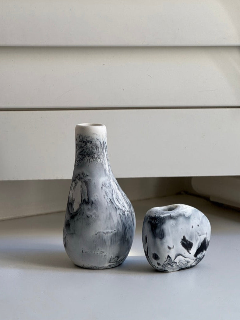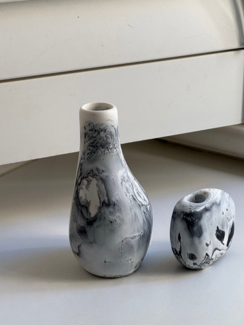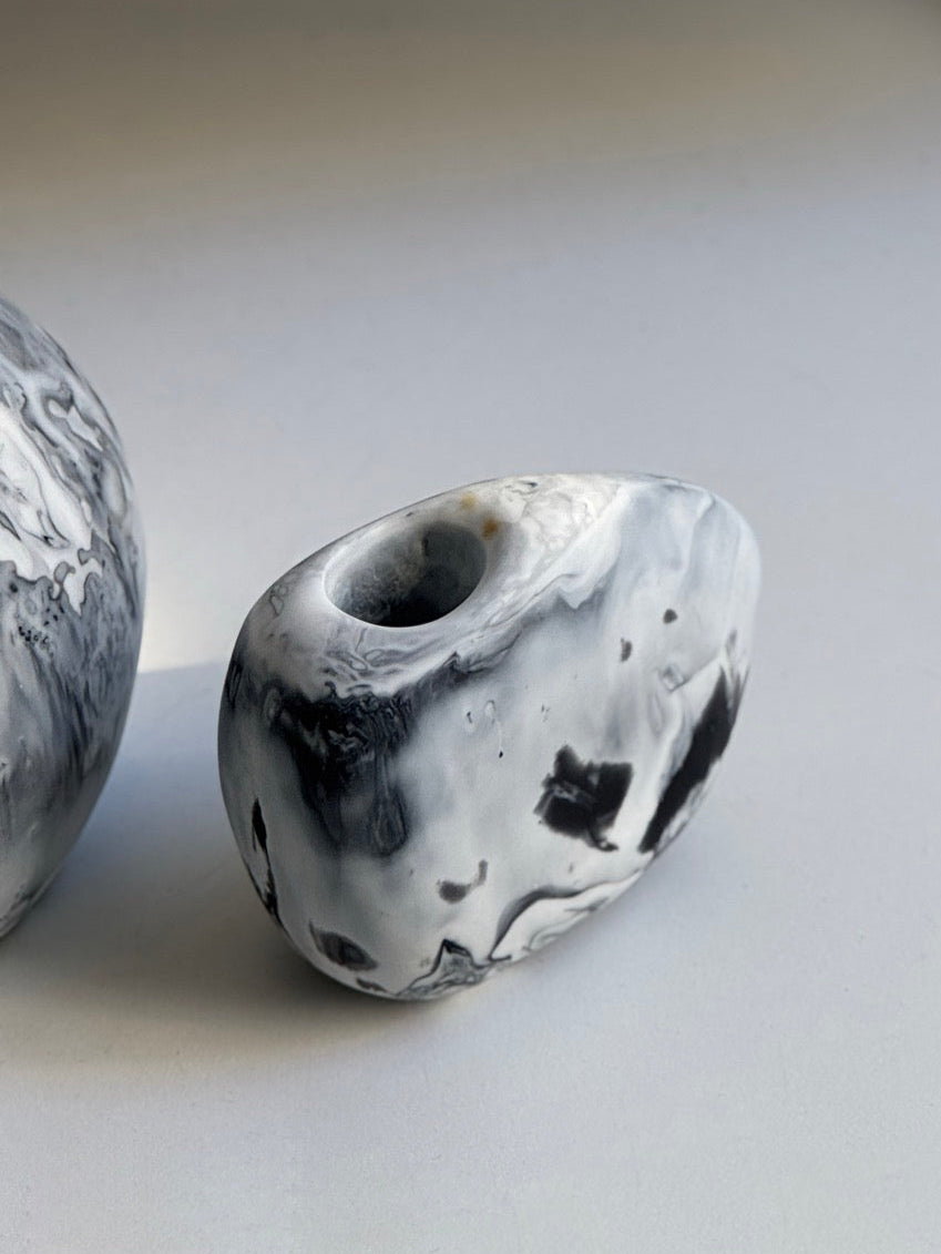 The Round Skipping Stone Vase in white marble - 9.5cm H
