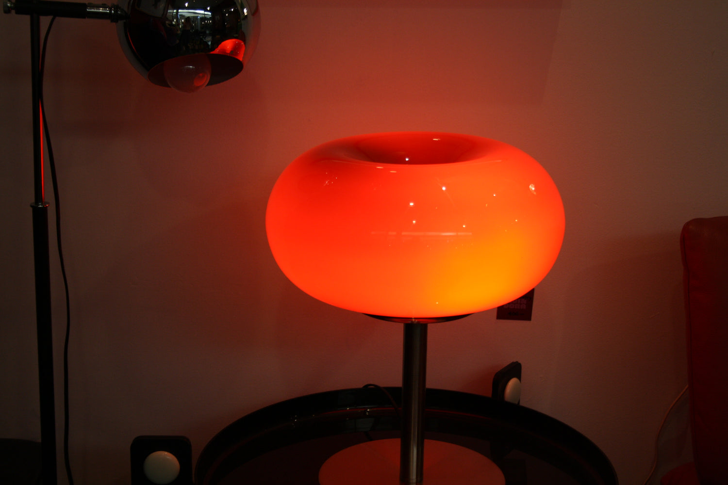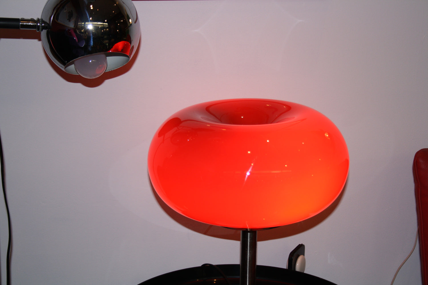 Beautiful shaped glass lamp, gives a warm red glow to the room.