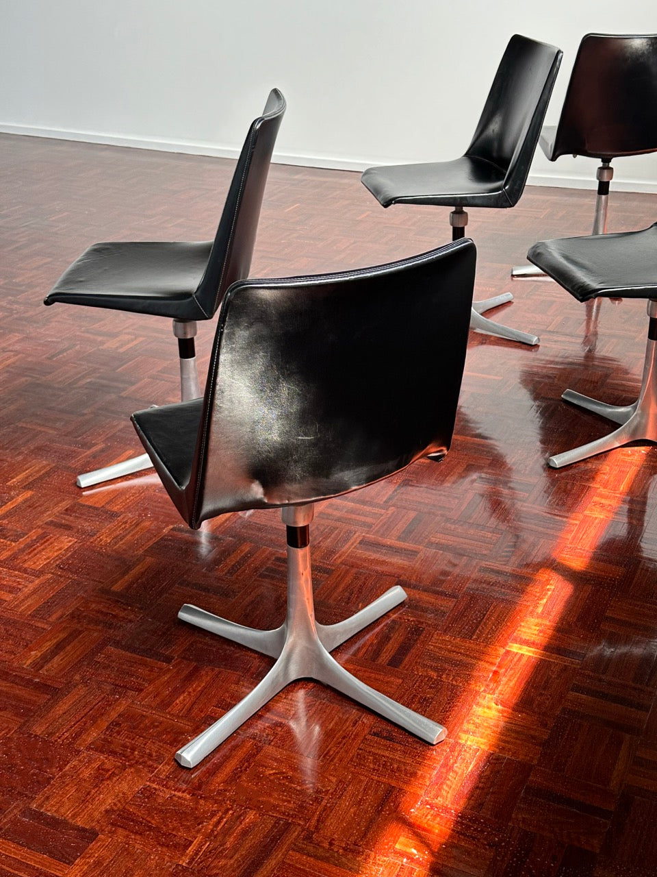 Varna chairs are Vinyl on aluminium base. Designed 1966, manufactured by Aristoc Industries Pty. Ltd