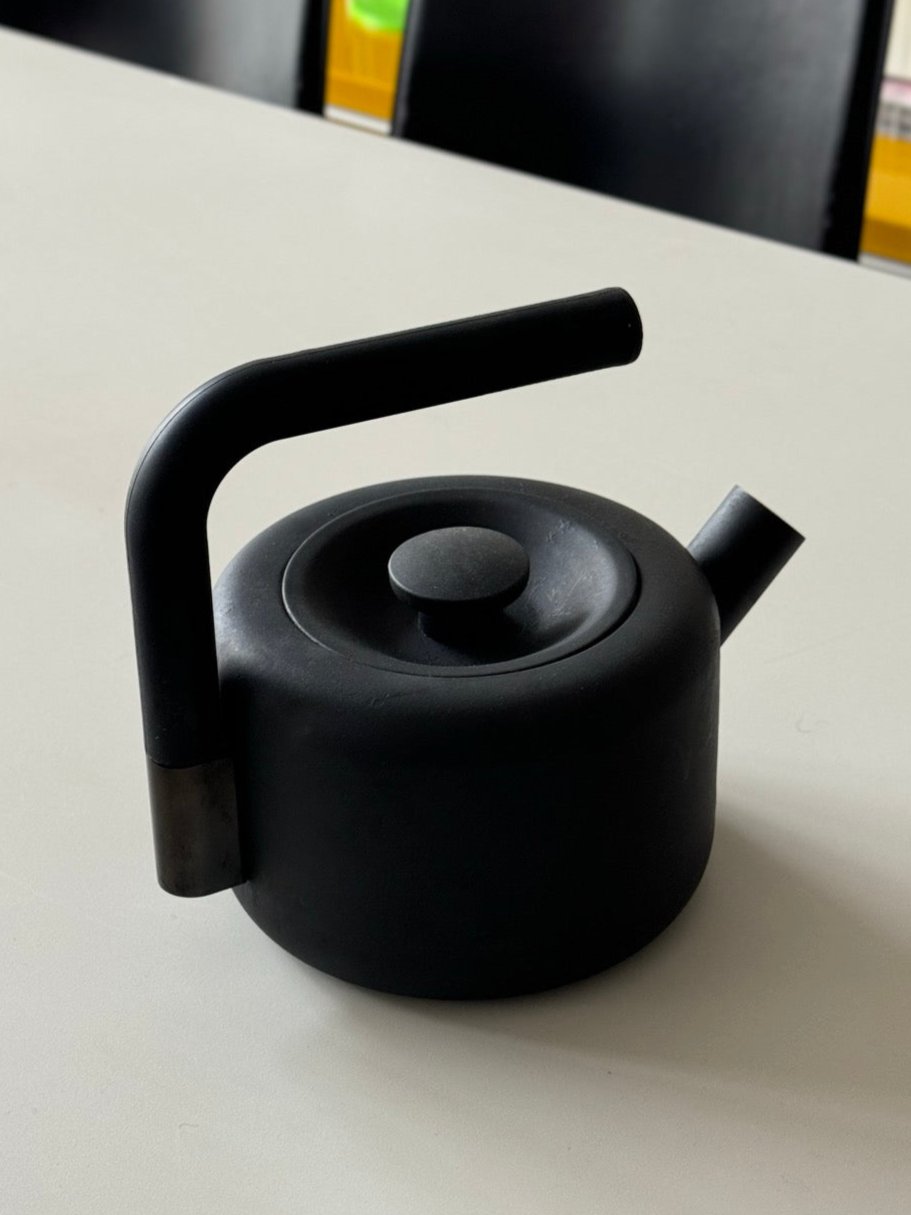Stovetop kettle in black high-grade stainless steel with a silicone wrapped handle, (preventing you from burning your hand). Detachable lid. 1.7 litre boiling capacity, and a two-tone harmonic whistle for a unique alert.