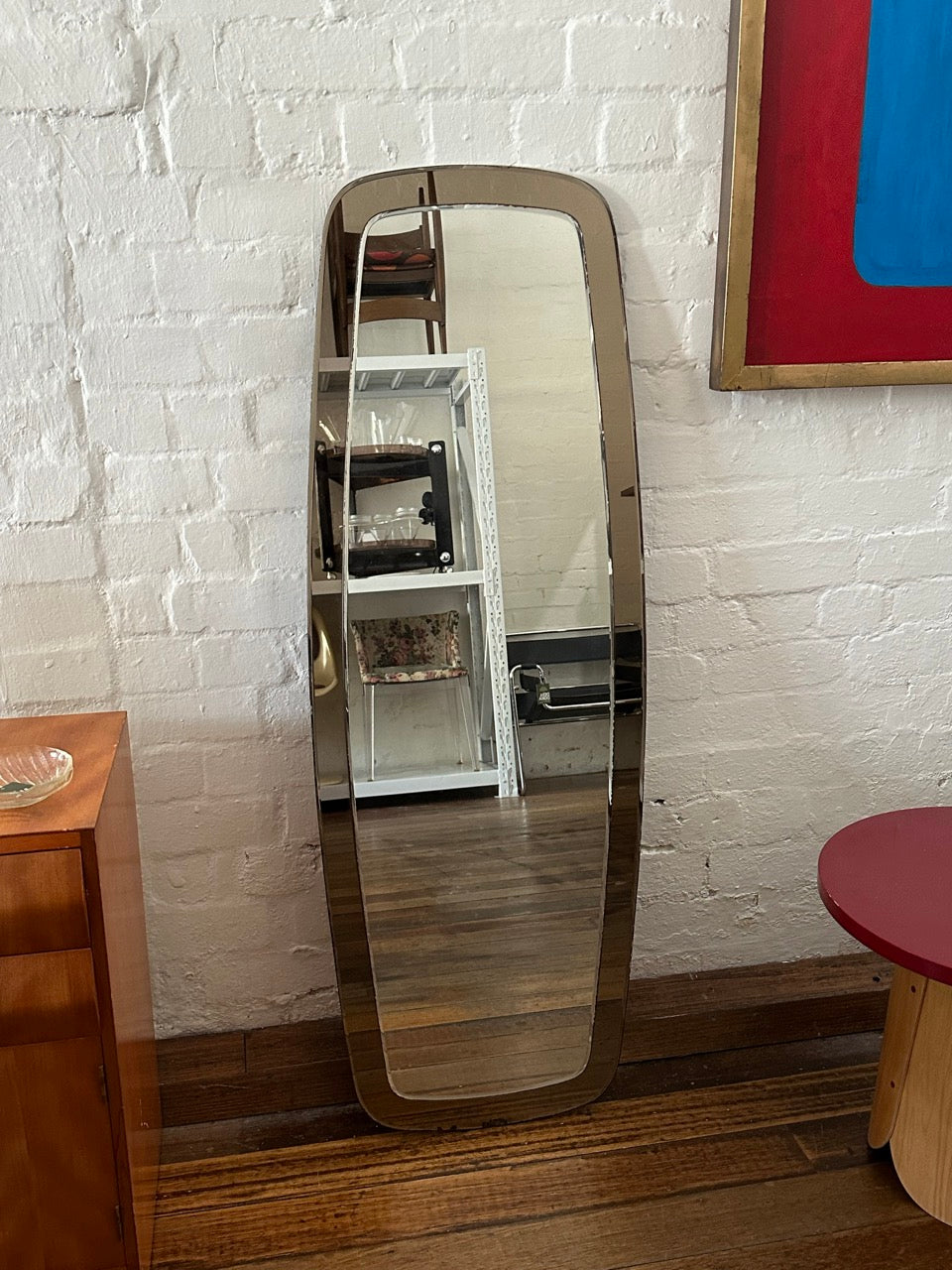 Italian rectangular shaped full length mirror with setback rose grey mirrored frame.