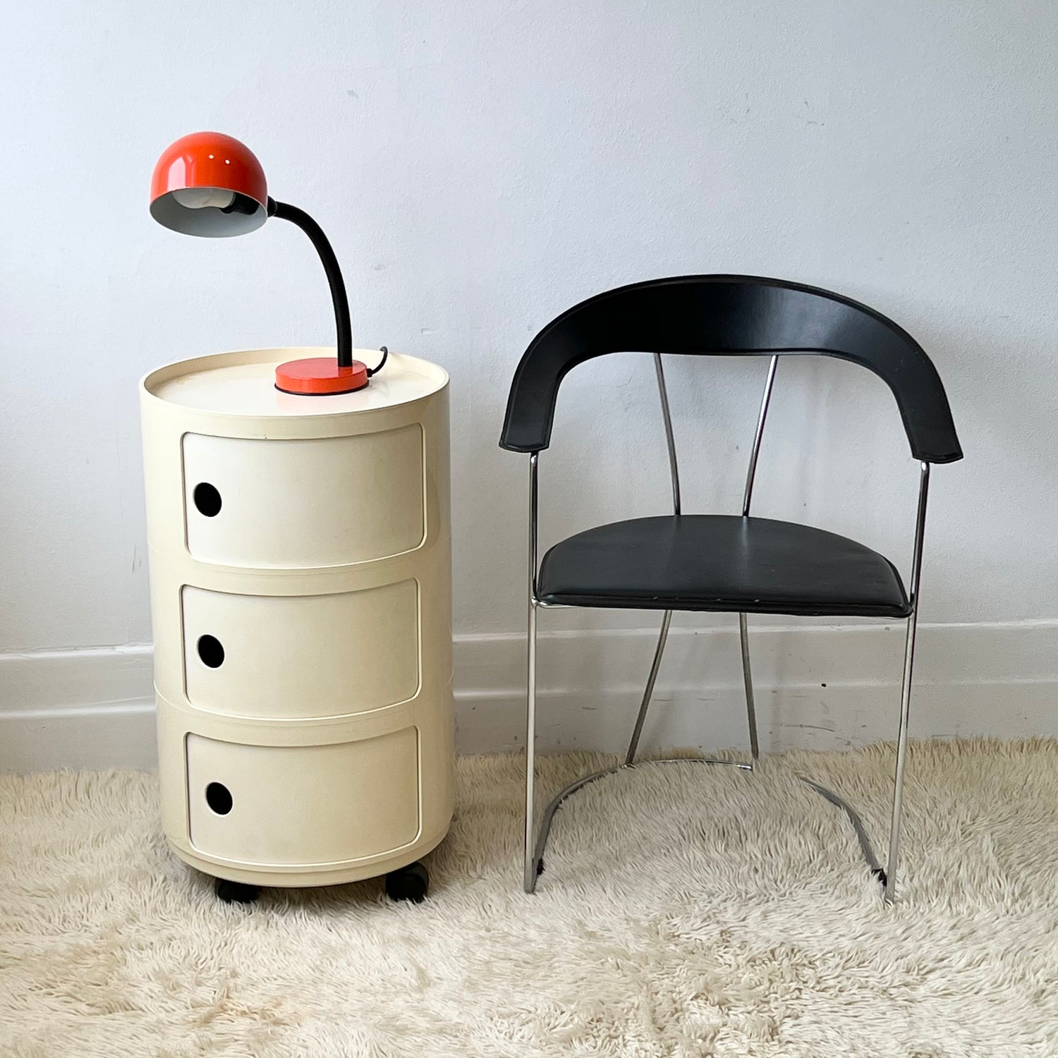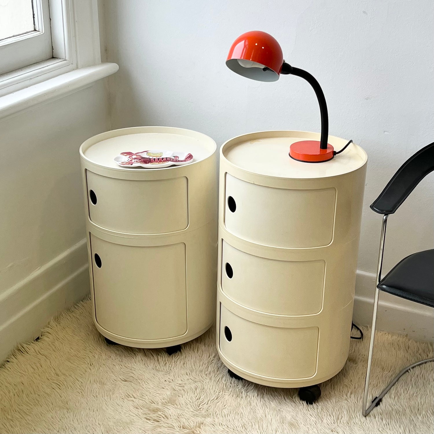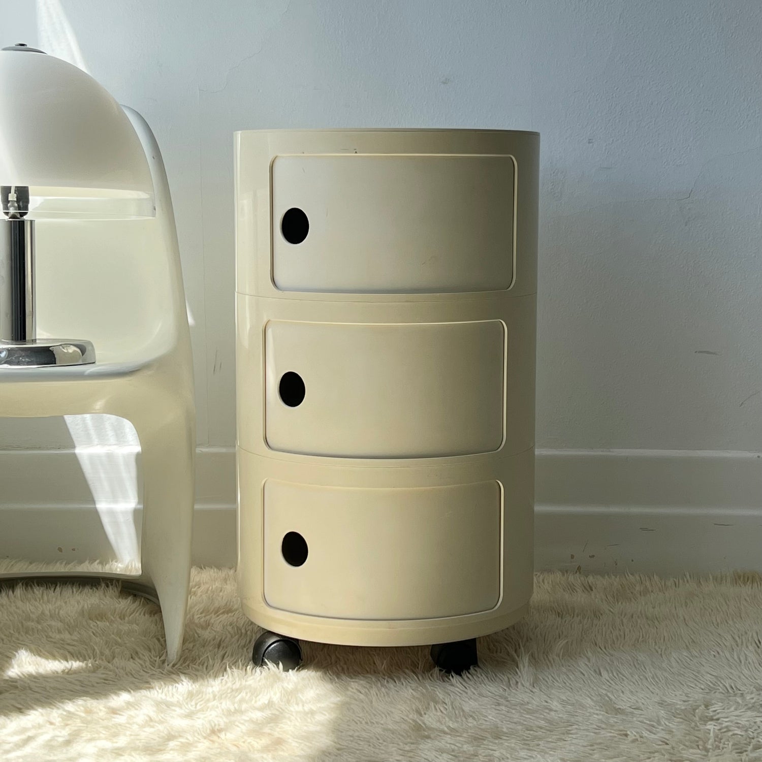 Designed by Anna Castelli Ferrieri, this contemporary unit features three compartments and a tray top.