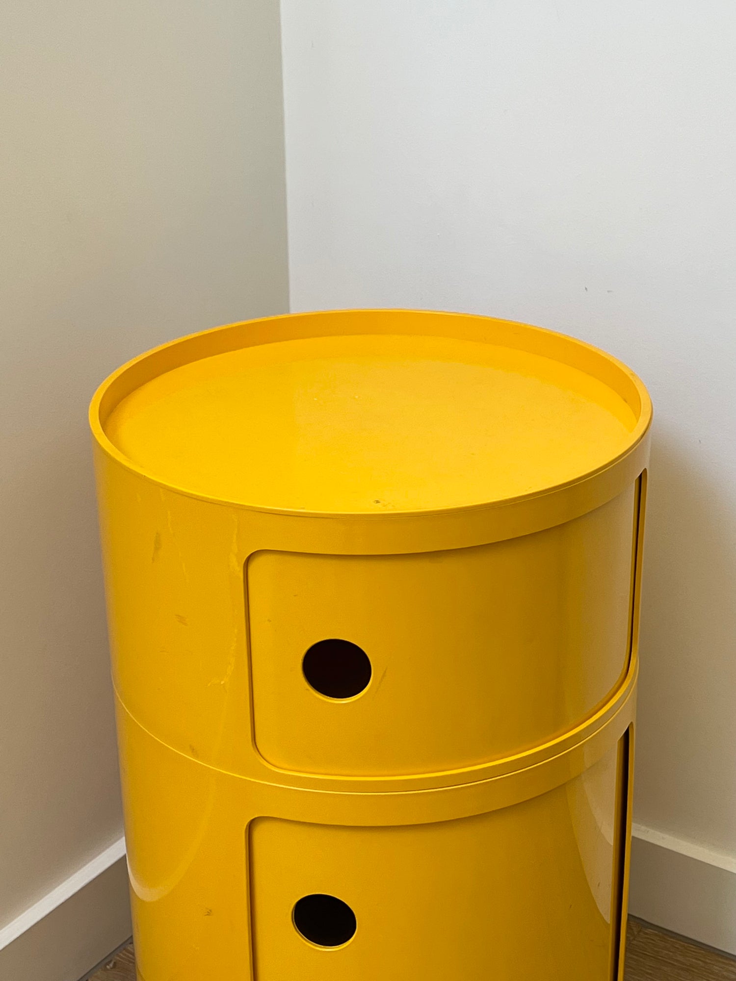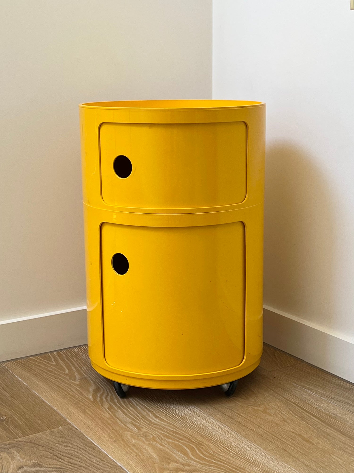 Designed by Anna Castelli Ferrieri, this contemporary unit features two compartments and a tray top in Yellow.