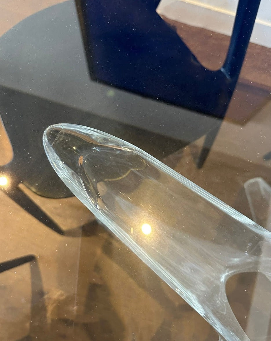 Made from a technopolymer thermoplastic base with a layered crystal top. The Sir Gio table is characterised by a central leg created using a high-tech mould: the moulded plastic material conveys high performance and stability to support the glass top.