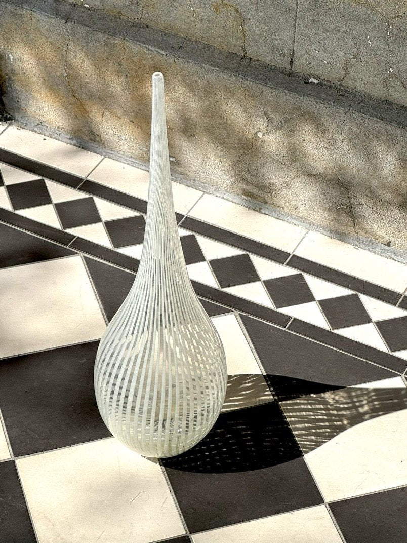 White Swirling Murano Glass Vase, Italy, 1970s