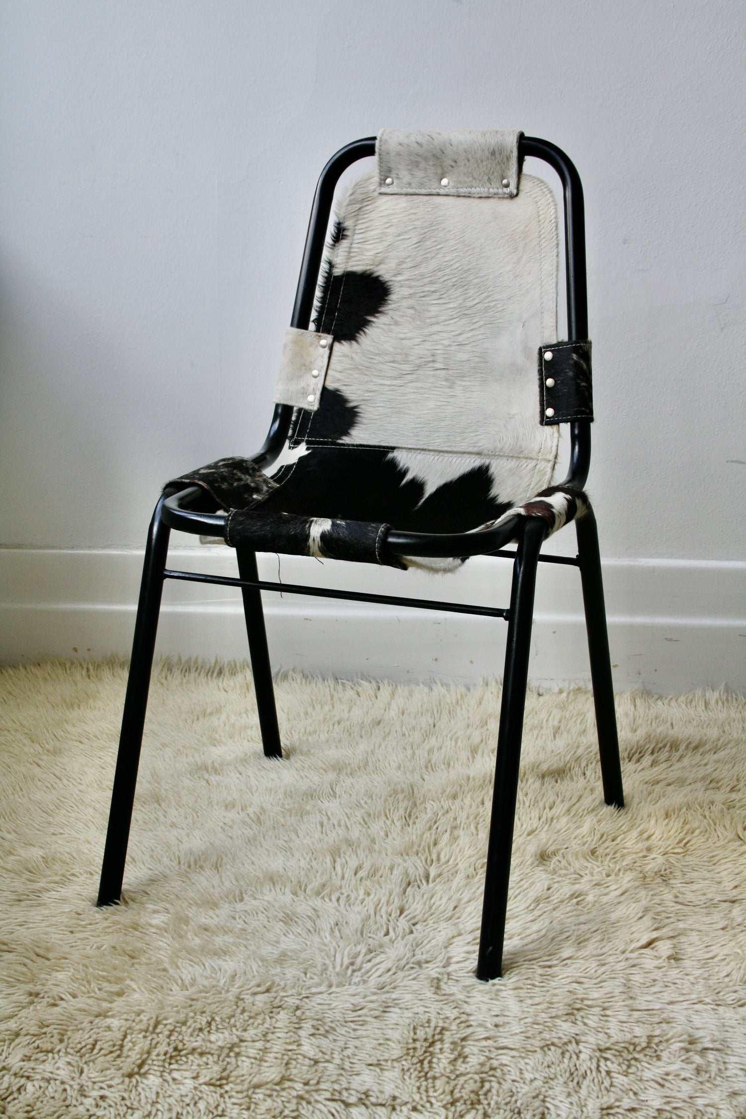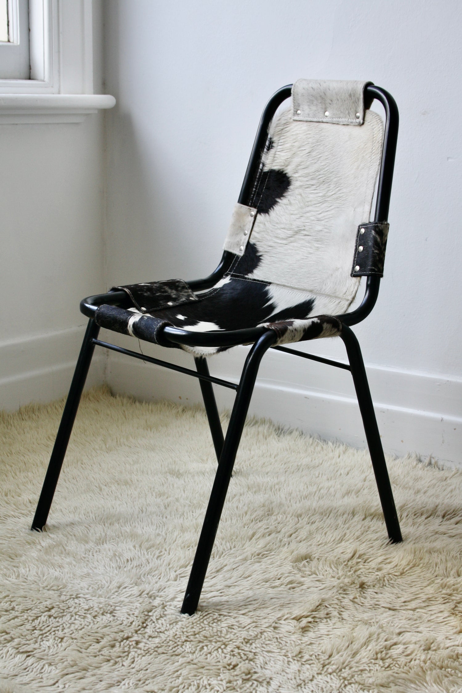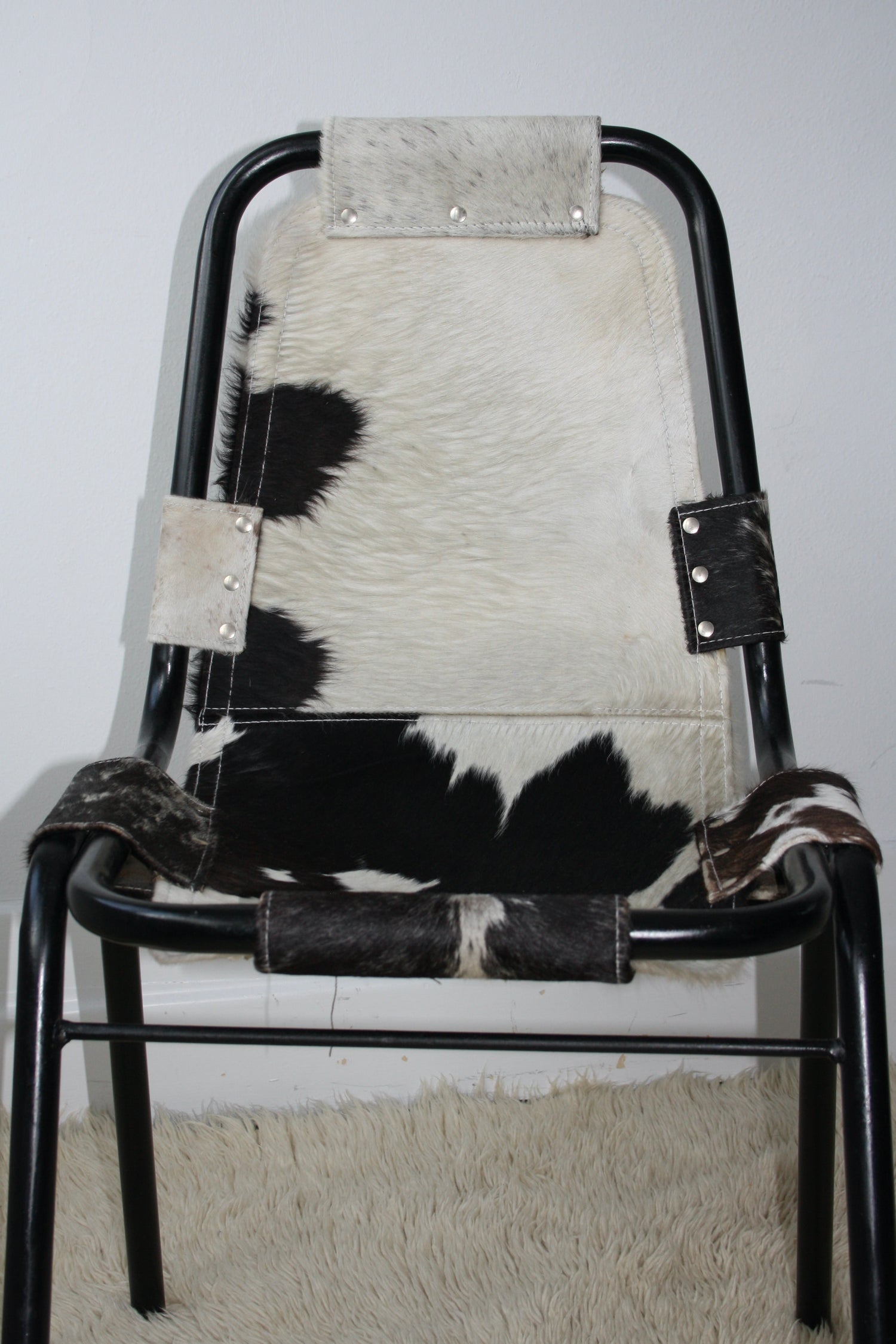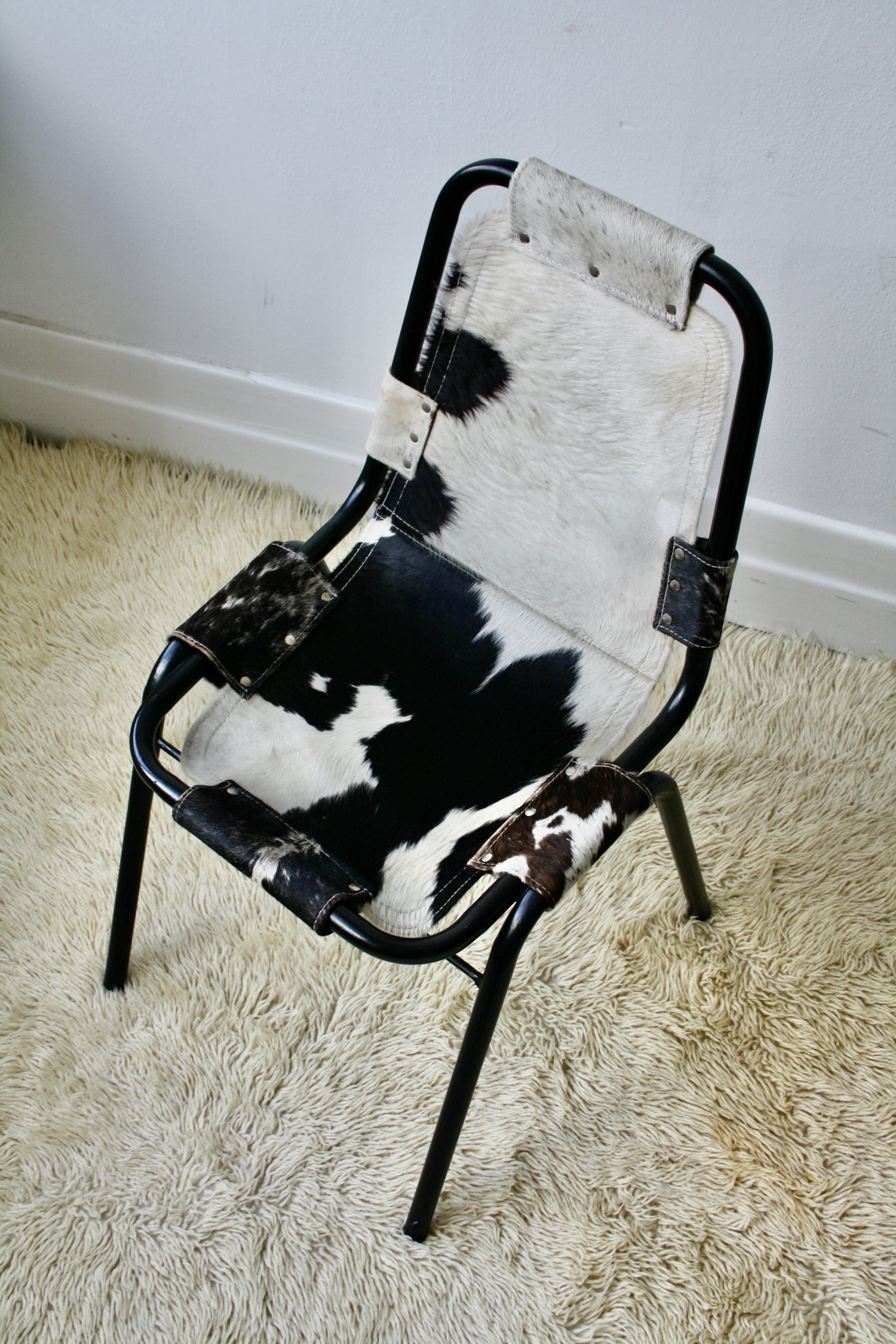 The metal construction is painted in black and the seat and backrest are in cowhide leather.