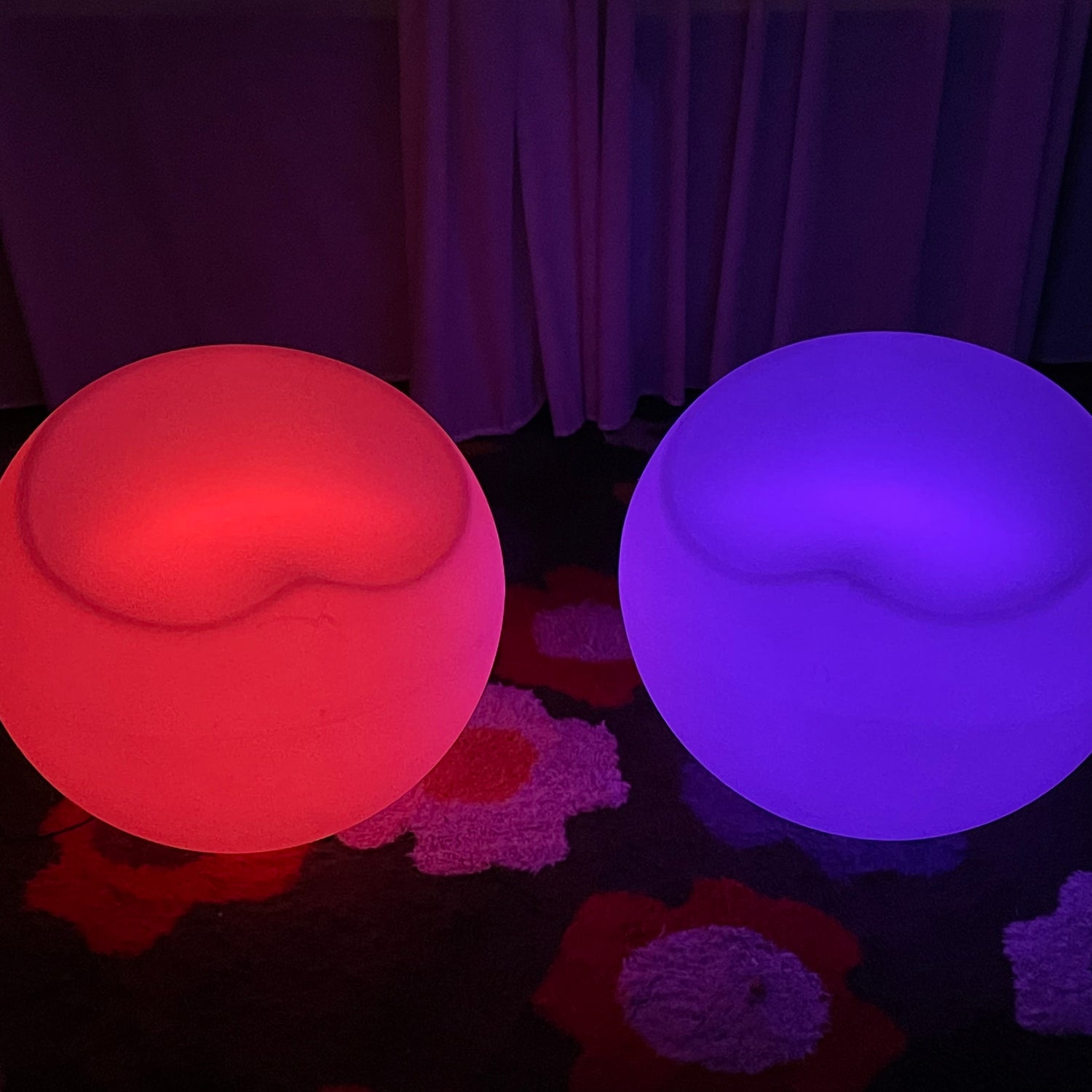 Good vintage condition. Some marks and scratches to the stools. They both still light up, however, this can only be seen in darkness and they don’t light up as well as they once did.