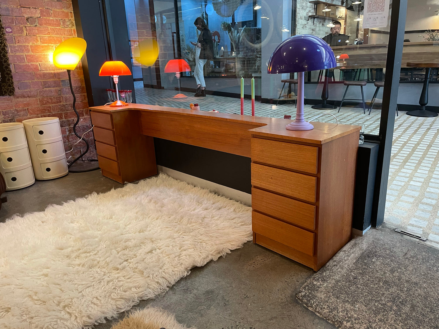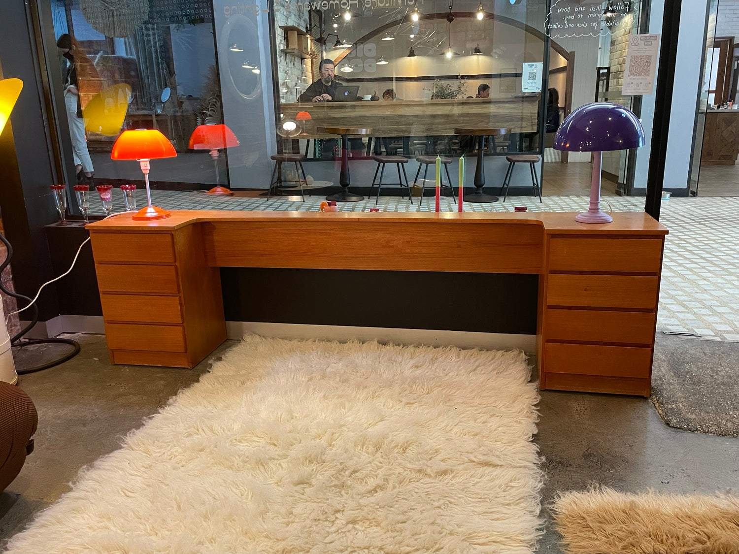Mid Century Modern Teak Bed Head with four bedside drawers on each side
