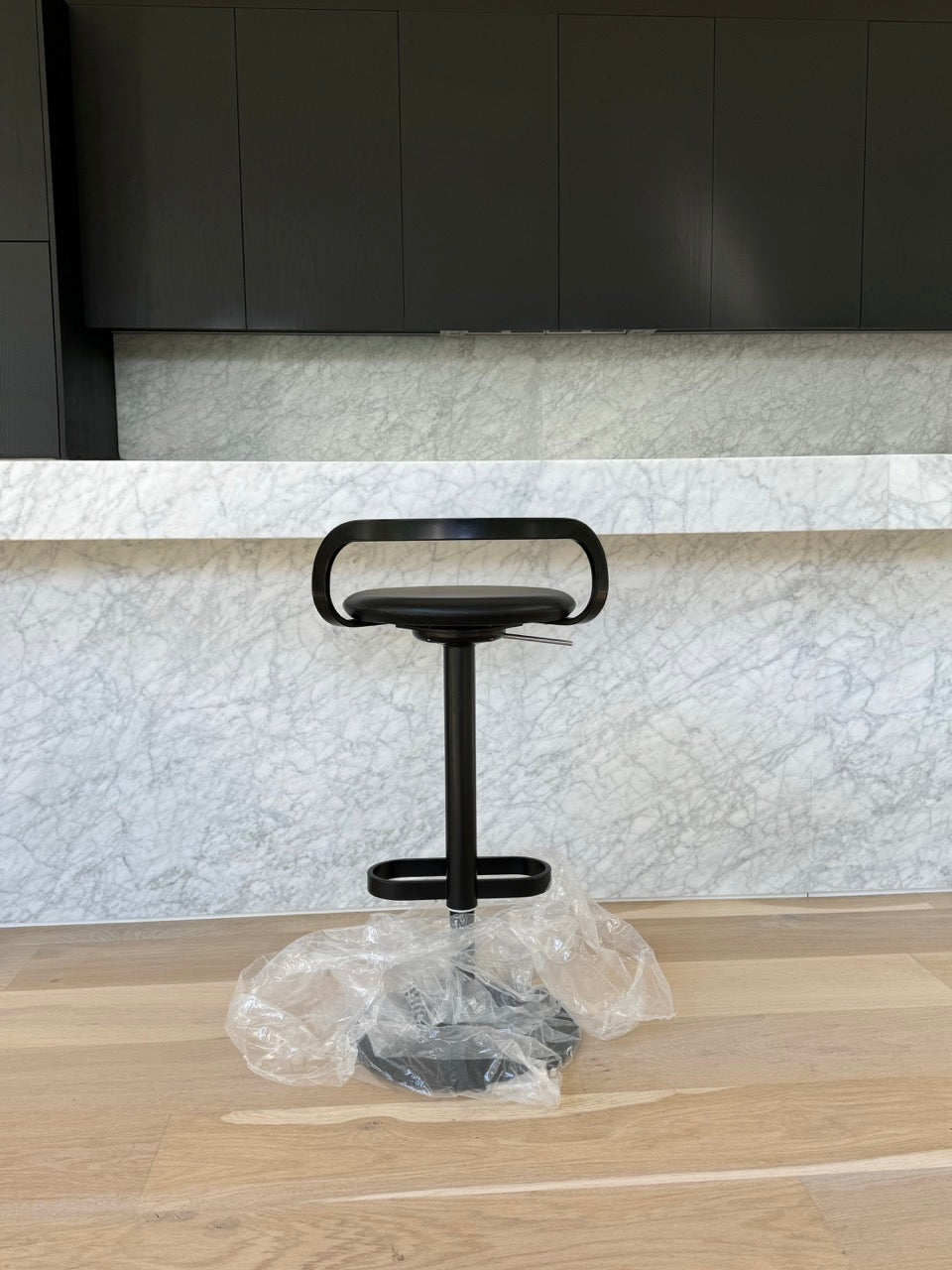 MAK is a stool with an elegant line, a contrast of circles and curved lines that perfectly balance the column, the seat and footrest. Its character is informal and light-hearted.