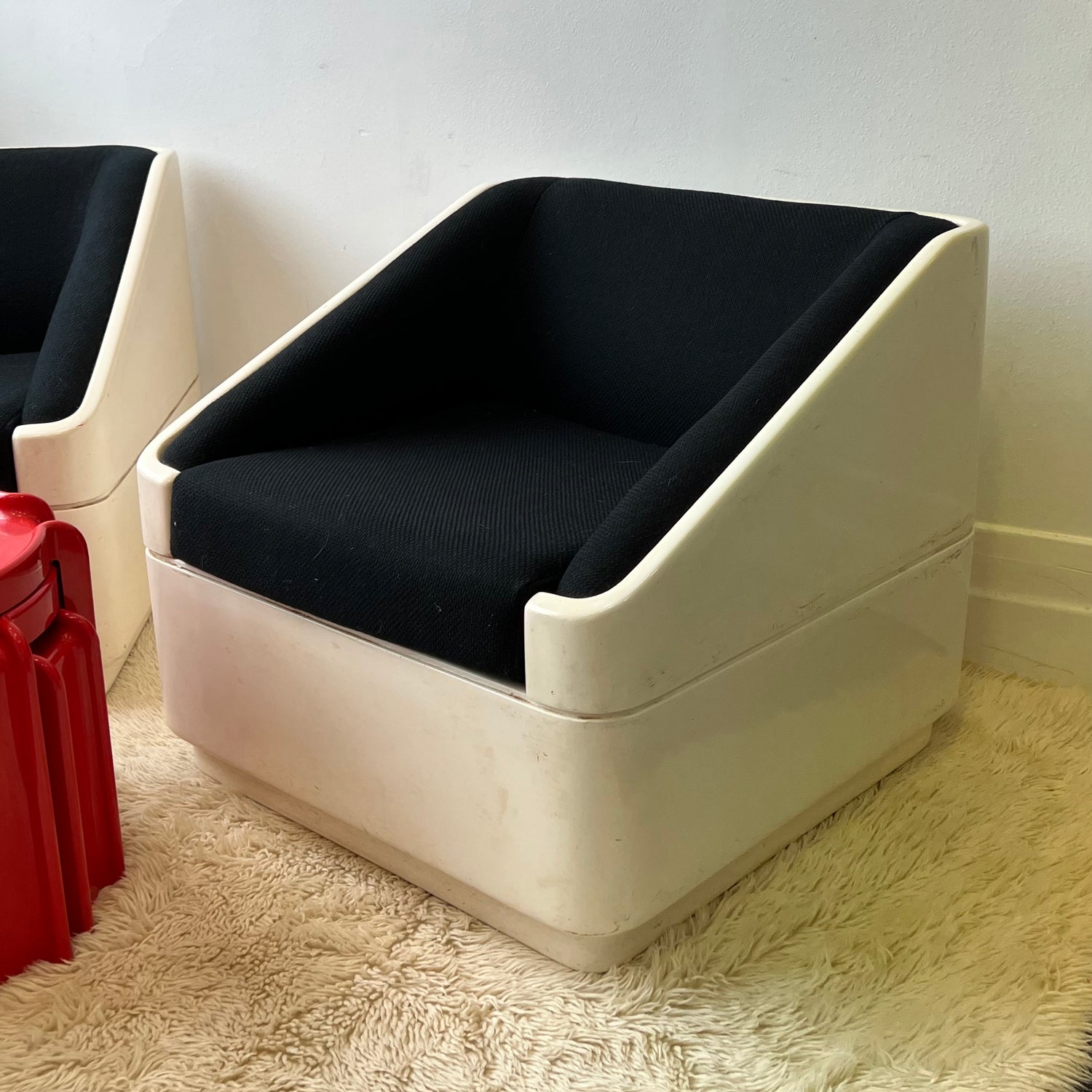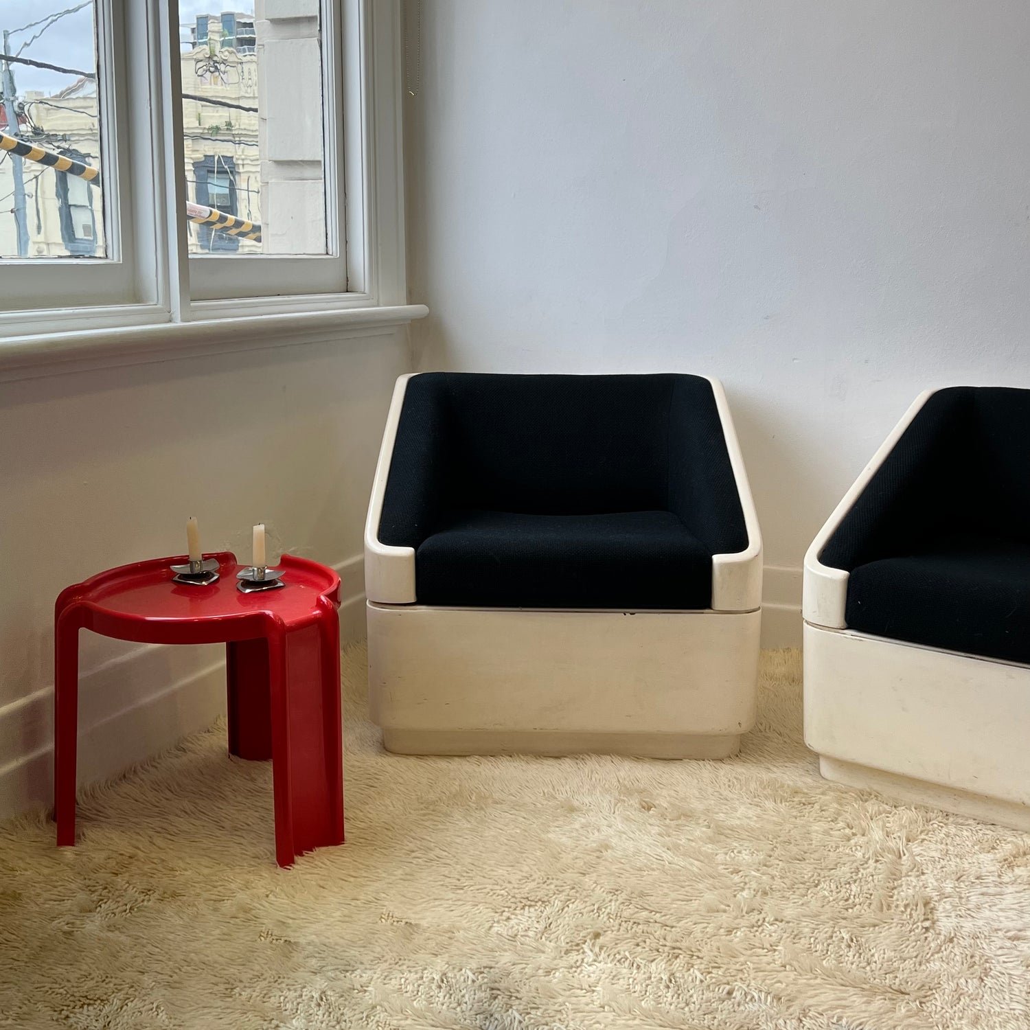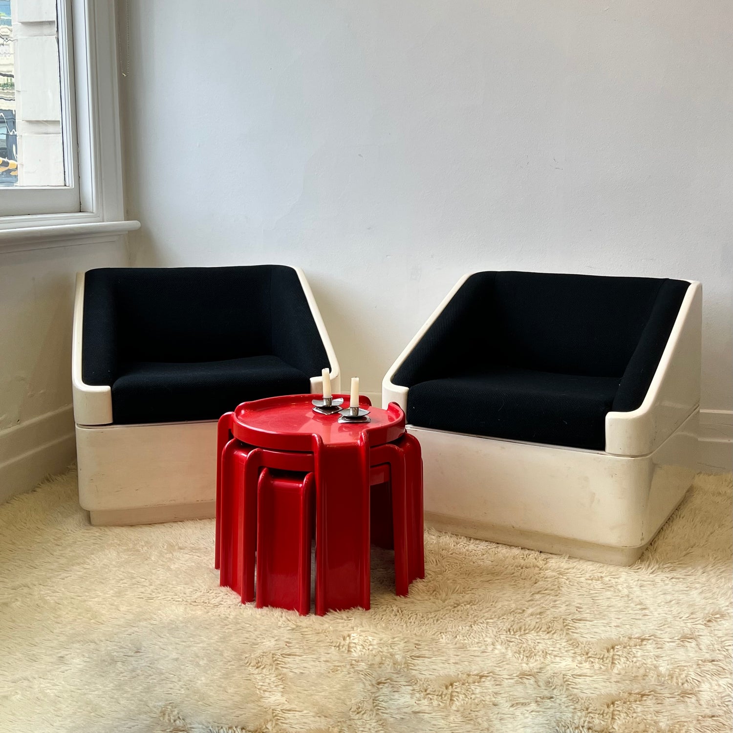 Significant scuff marks, staining and scratching to body of tub chairs. Original fabric, however has no rips, stains or tears. Both are structurally sound and in good condition.