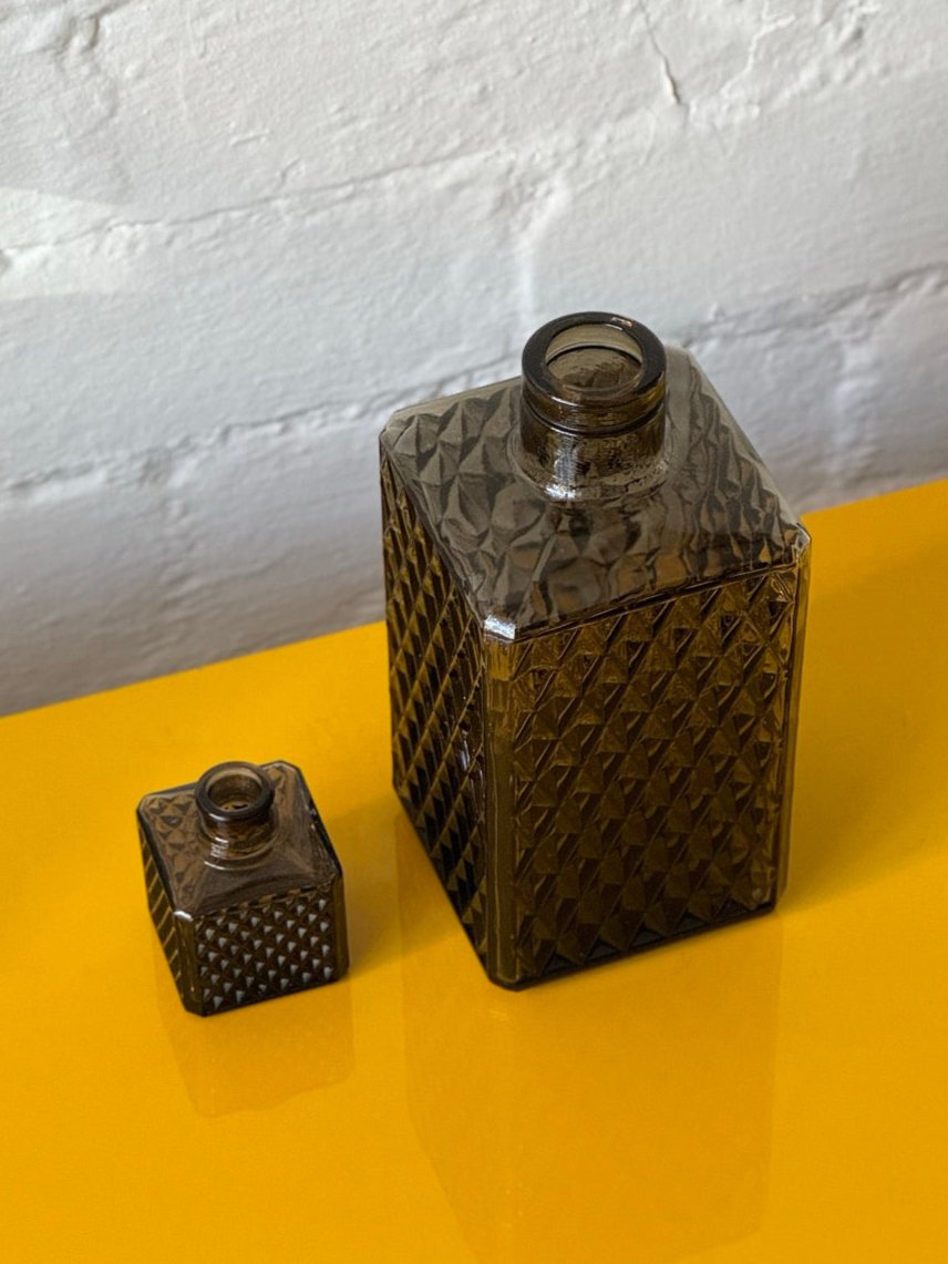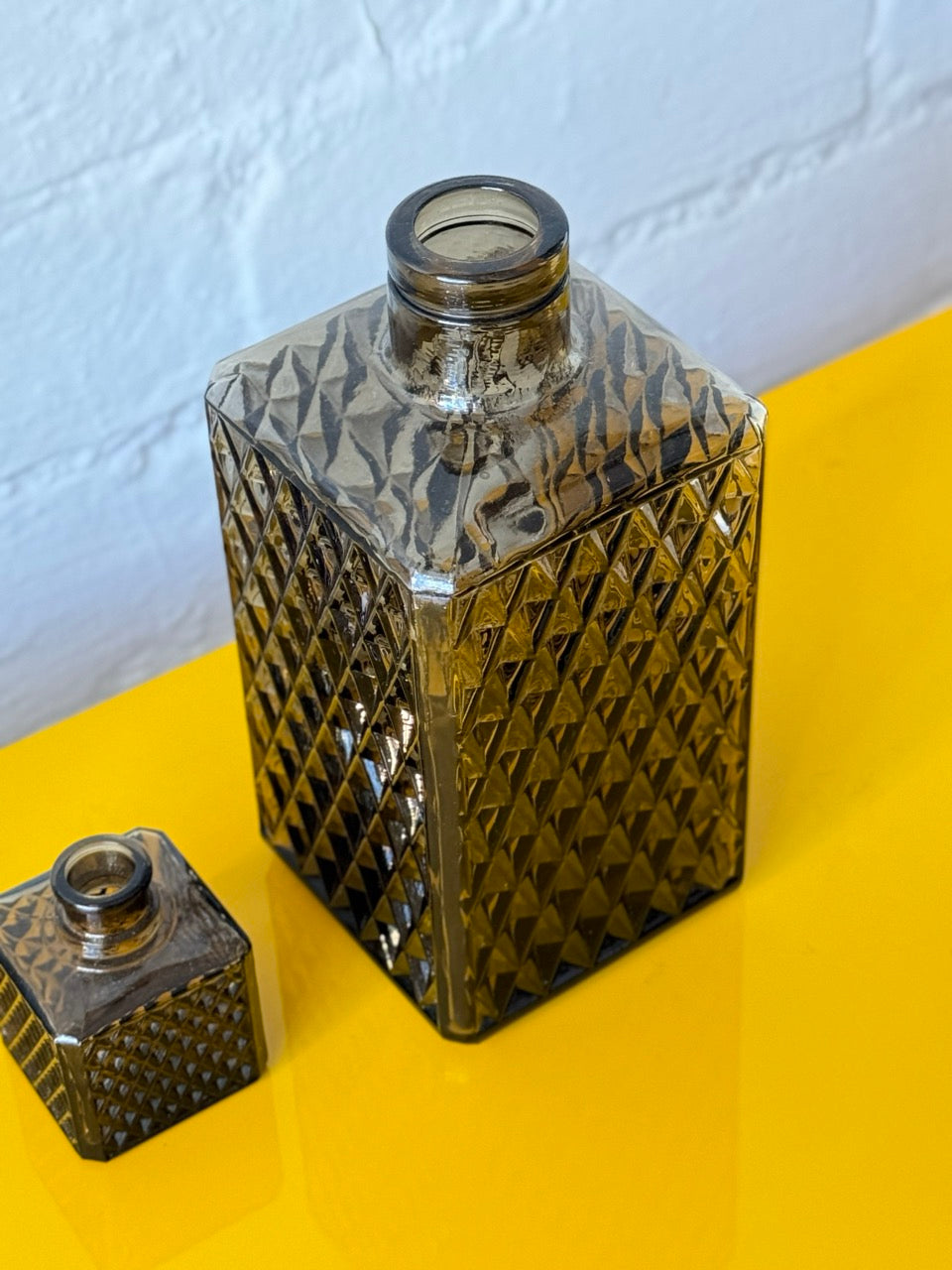 Vintage smokey glass bottles / vases with a square cut pattern, 1970s