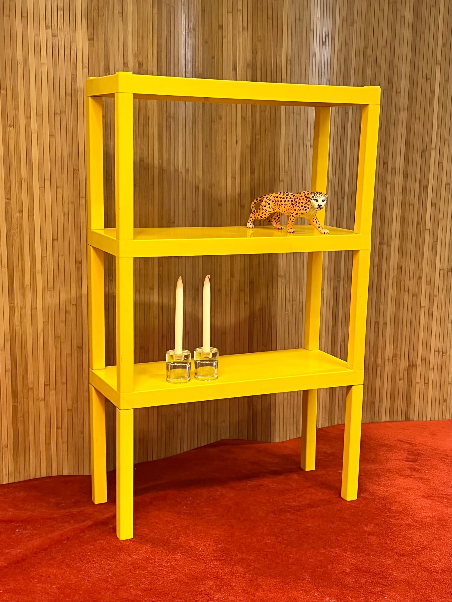 Yellow 3 Level shelf with 12 legs, has plenty of storage. Configure as one large shelf or can build a few smaller shelves, with Sherman shelving - the choice is yours!