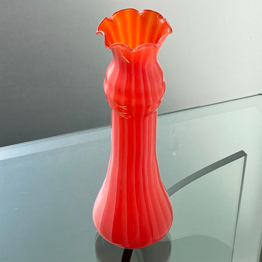 Pink Glass Vase with Frill Detail