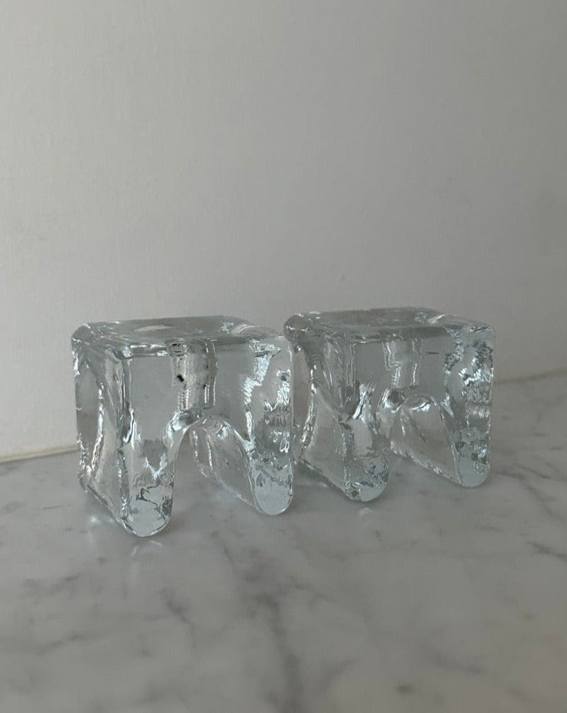A pair of ice cube glass candlesticks, Finland, 1970s