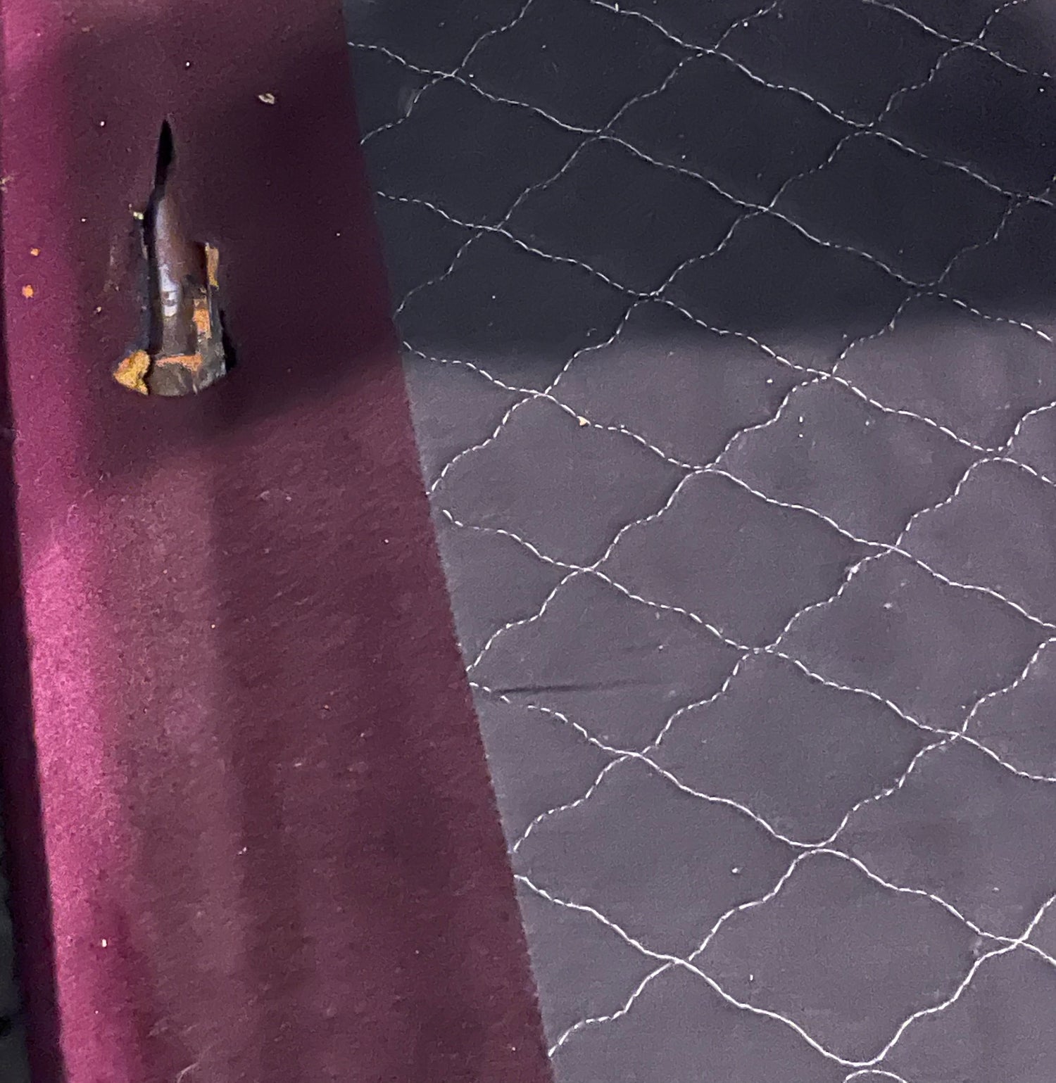 In sage green and maroon