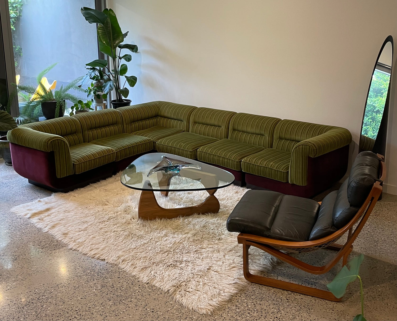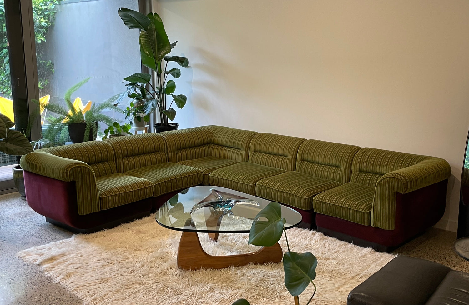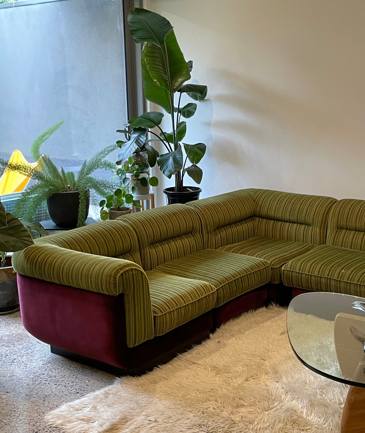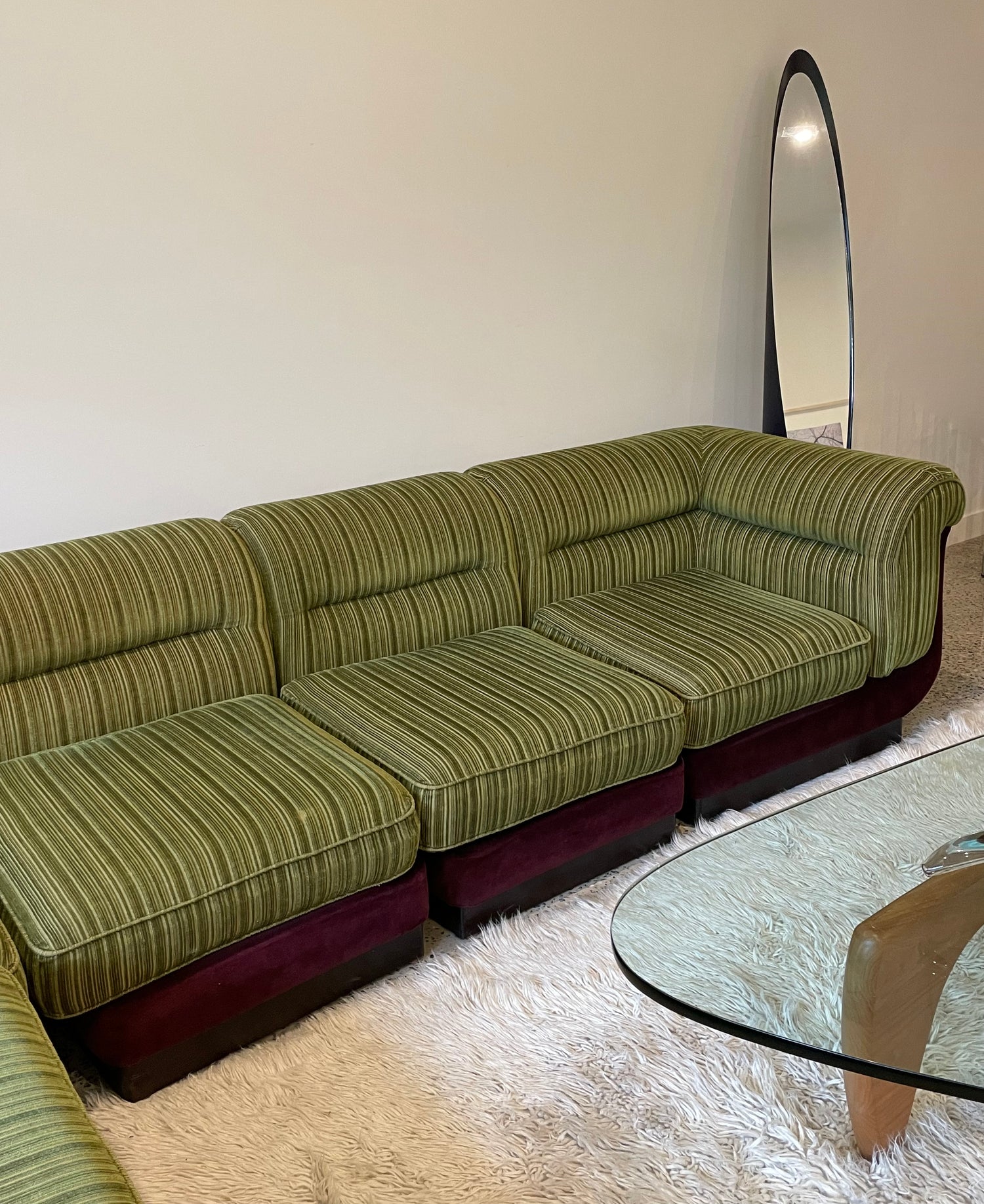6 piece comfortable, Lowline vintage 1970s velvet modular sofa