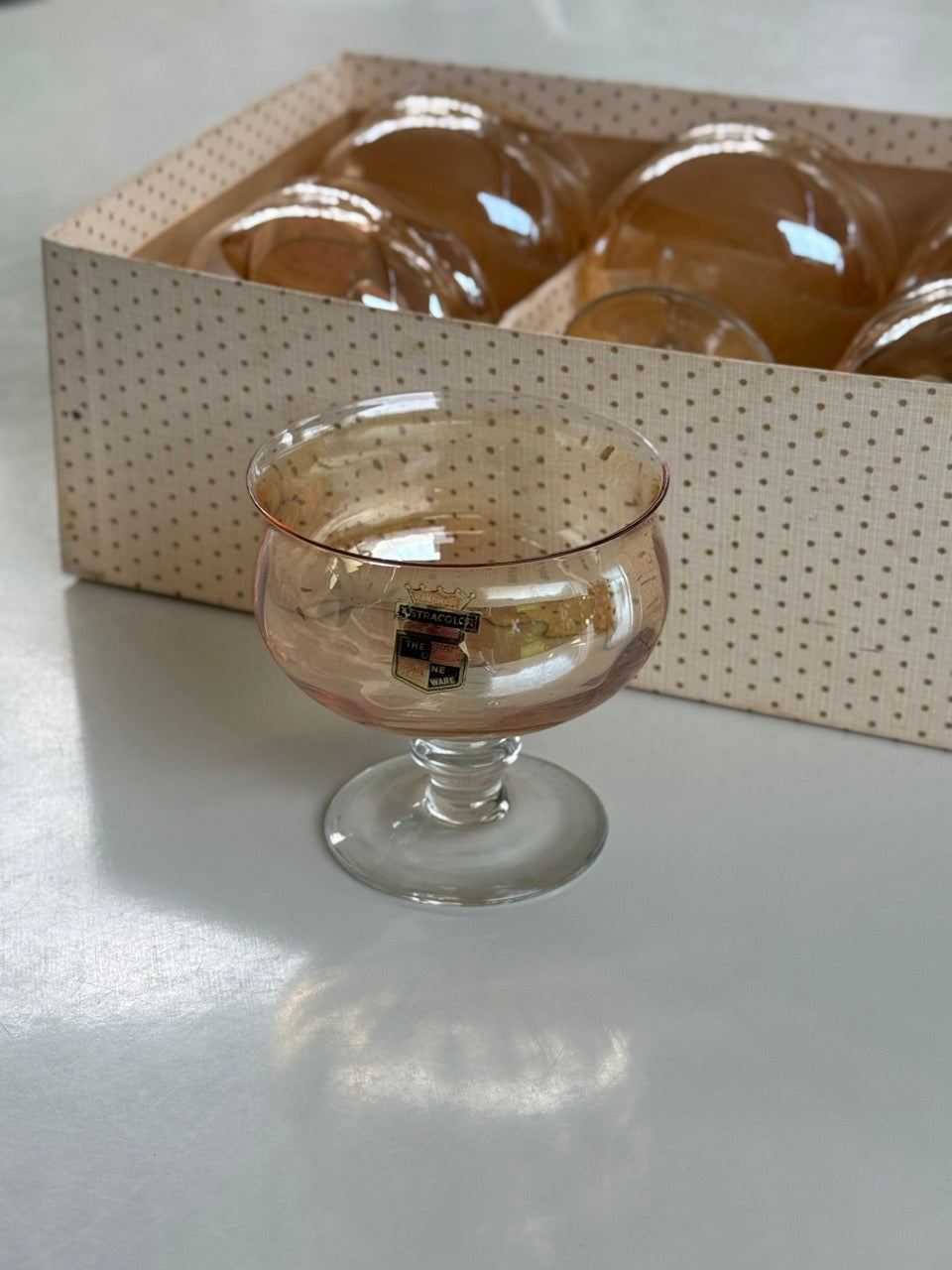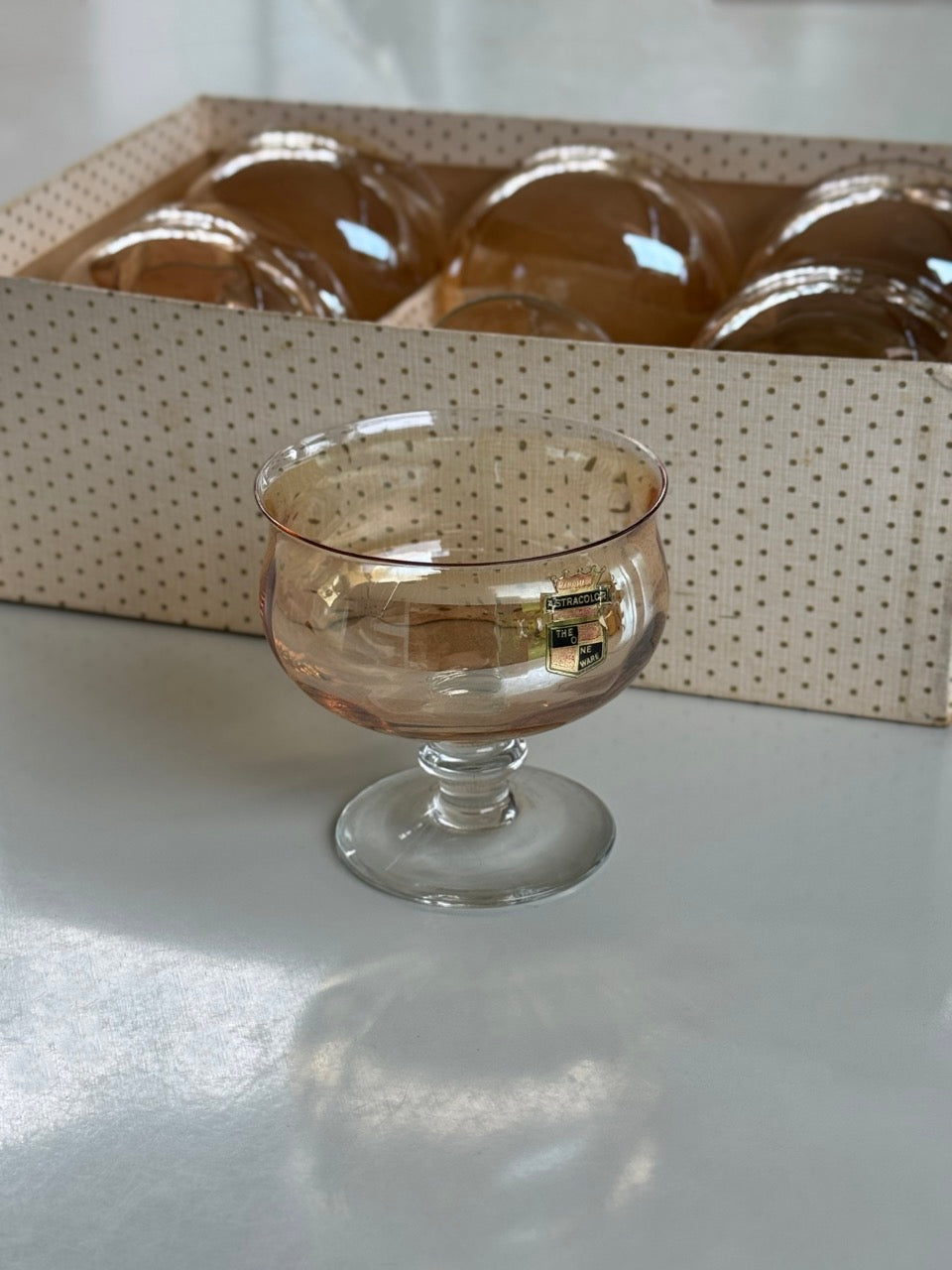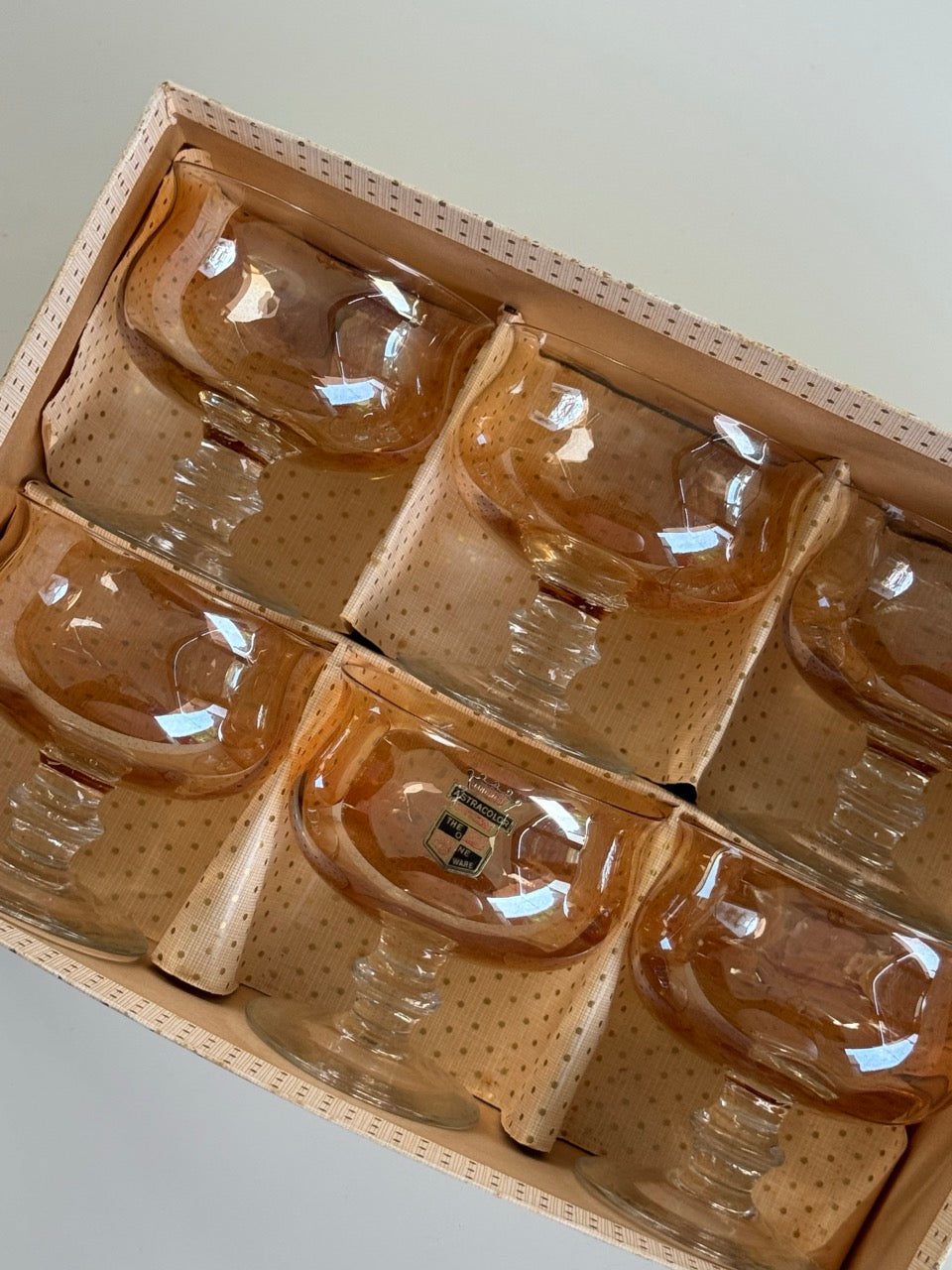Set of 6 Handmade Astracolor Glasses / Dessert Coupes in Peach and Clear Glass
