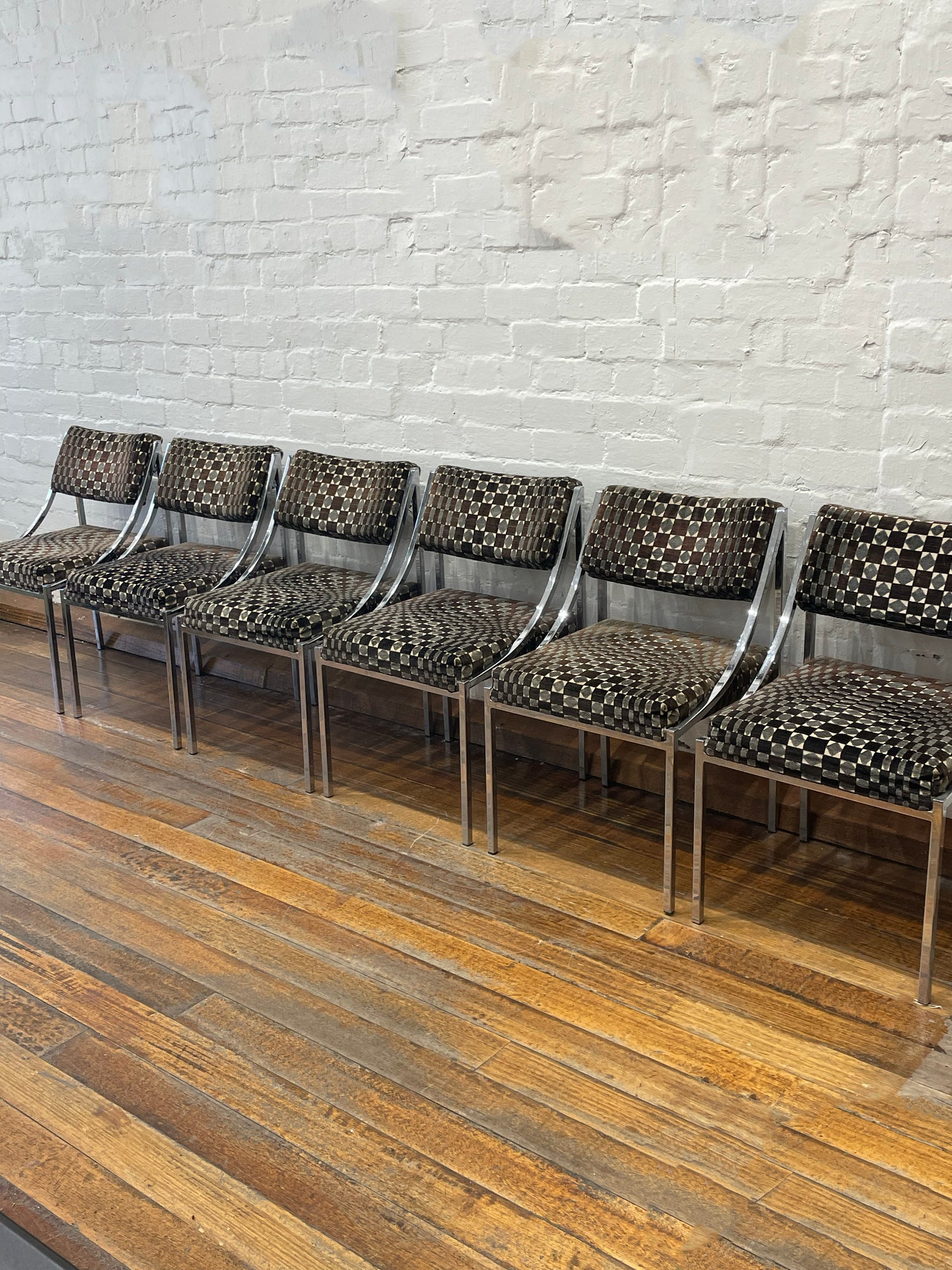 Six incredible vintage Hollywood Regency style velvet and chrome chairs.