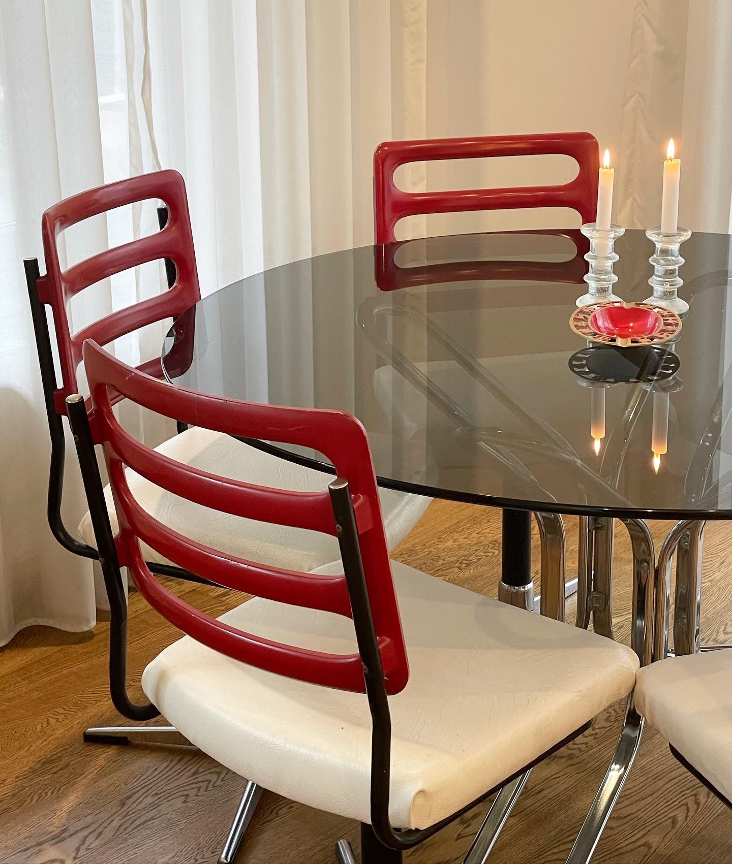 Condition: good condition. No tears to the seat vinyl, some light scratches and marks on the backrests (consistent with age).