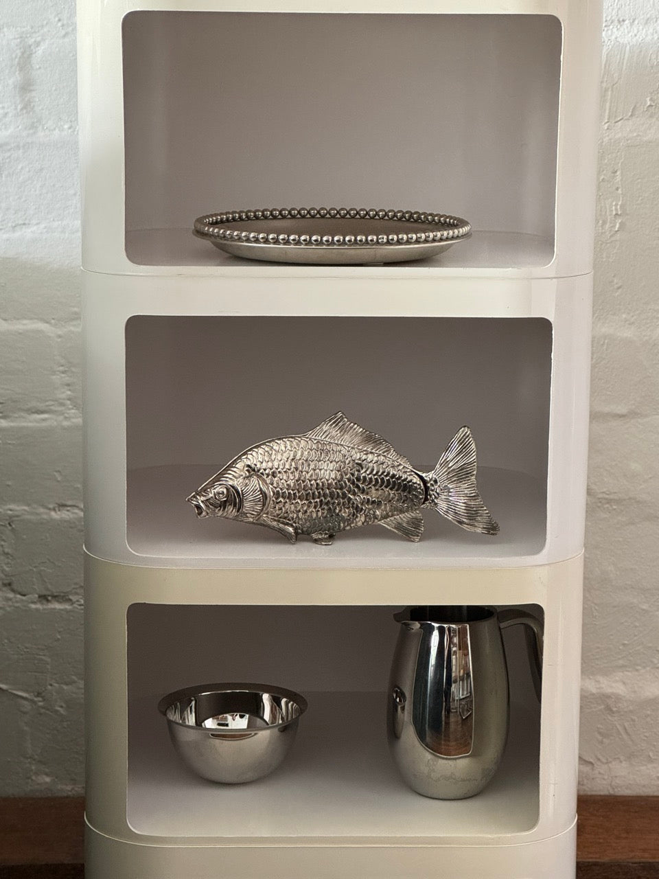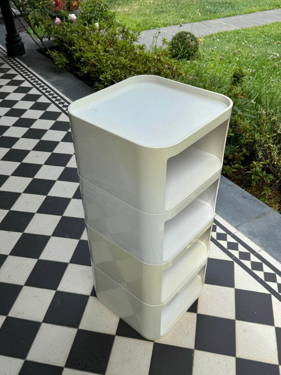 Designed by Anna Castelli Ferrieri, this unit features four compartments and a tray top.