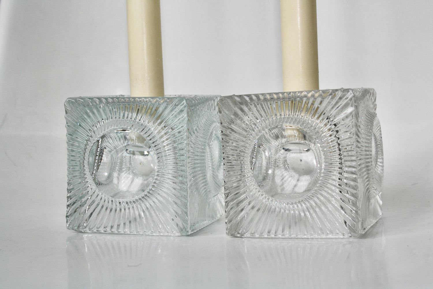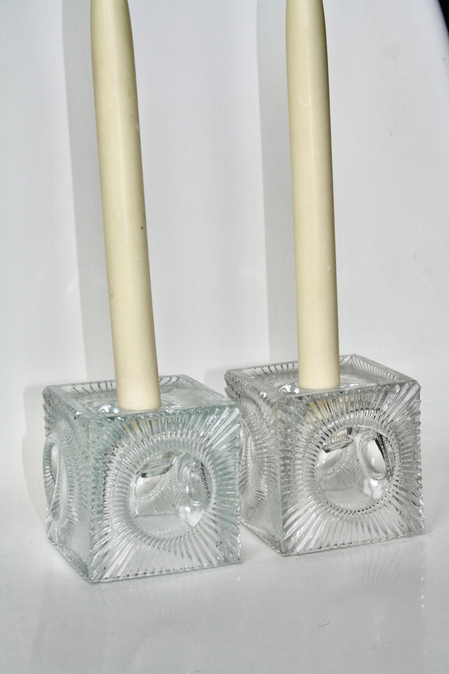 Beautiful Mid Century Candlesticks, square textured glass cubes.