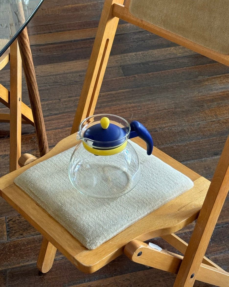 Vintage glass teapot with a plastic handle and lid. Most likely from the 1980s.
