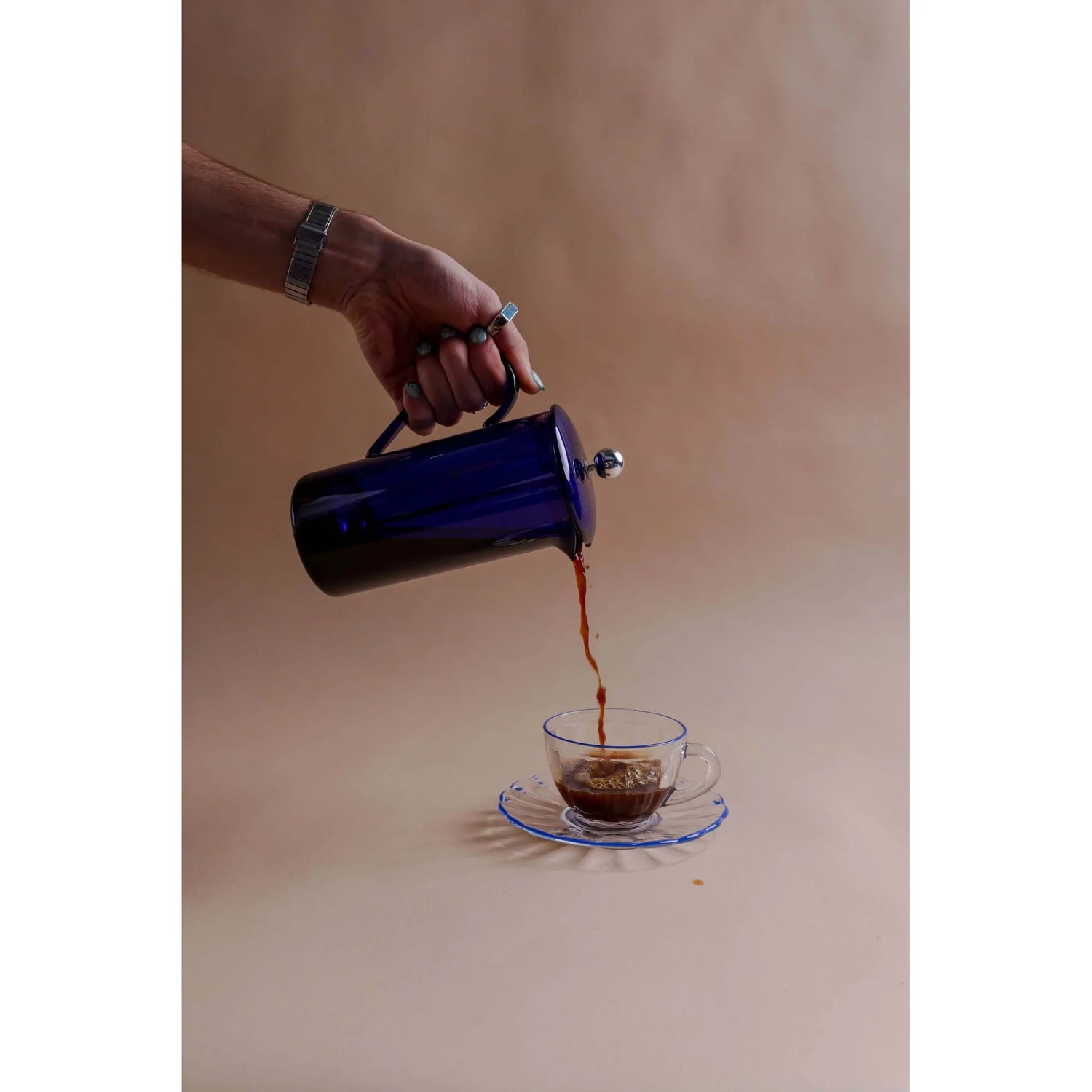 Designed with a balance of function and frivolity in mind, The French Press is crafted from hand blown, heat-proof borosilicate glass, with an elegant and contemporary silhouette. The Lapis Blue coffee plunger is both made to be displayed and used everyday. This cafetière is the perfect vessel to take pride of place on your kitchen countertop or become a table centrepiece when entertaining at home.