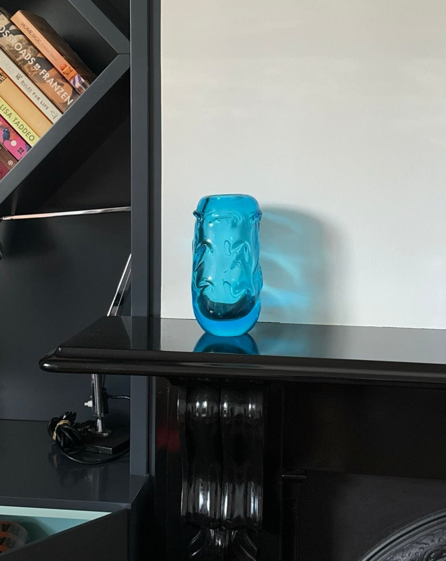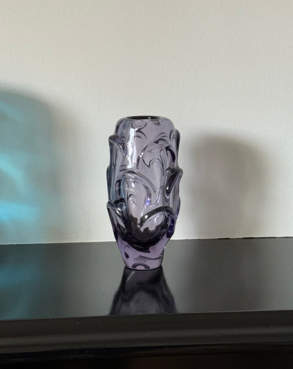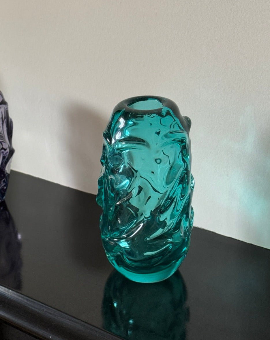 Heavy pieces known for the texture made from pulling molten glass into lobe shapes that results in styles like this.