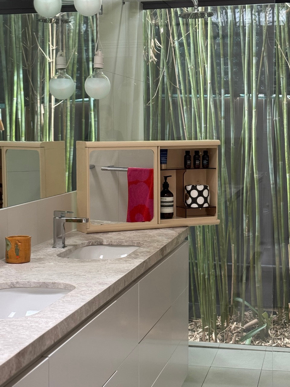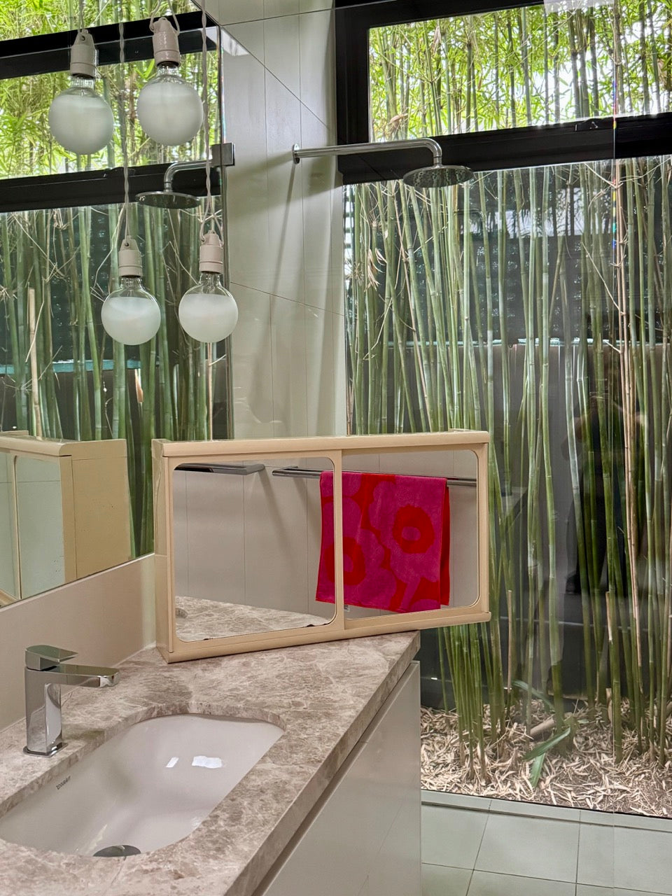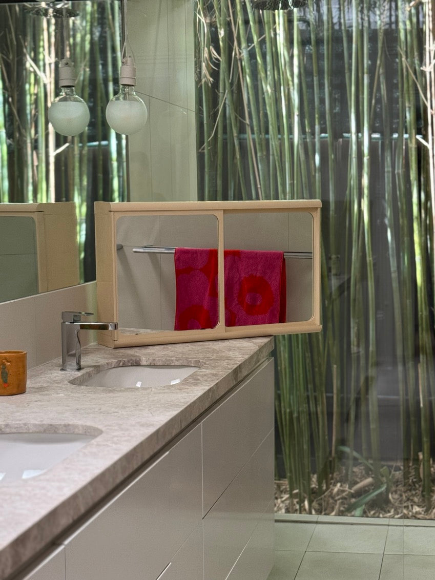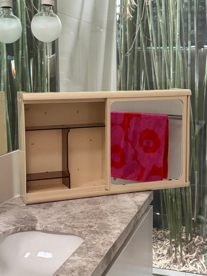 Mid century Caroma plastic twin mirror and full interior cabinet in cream