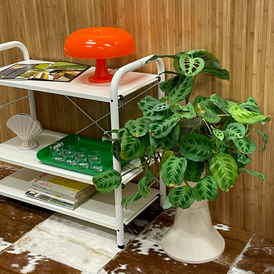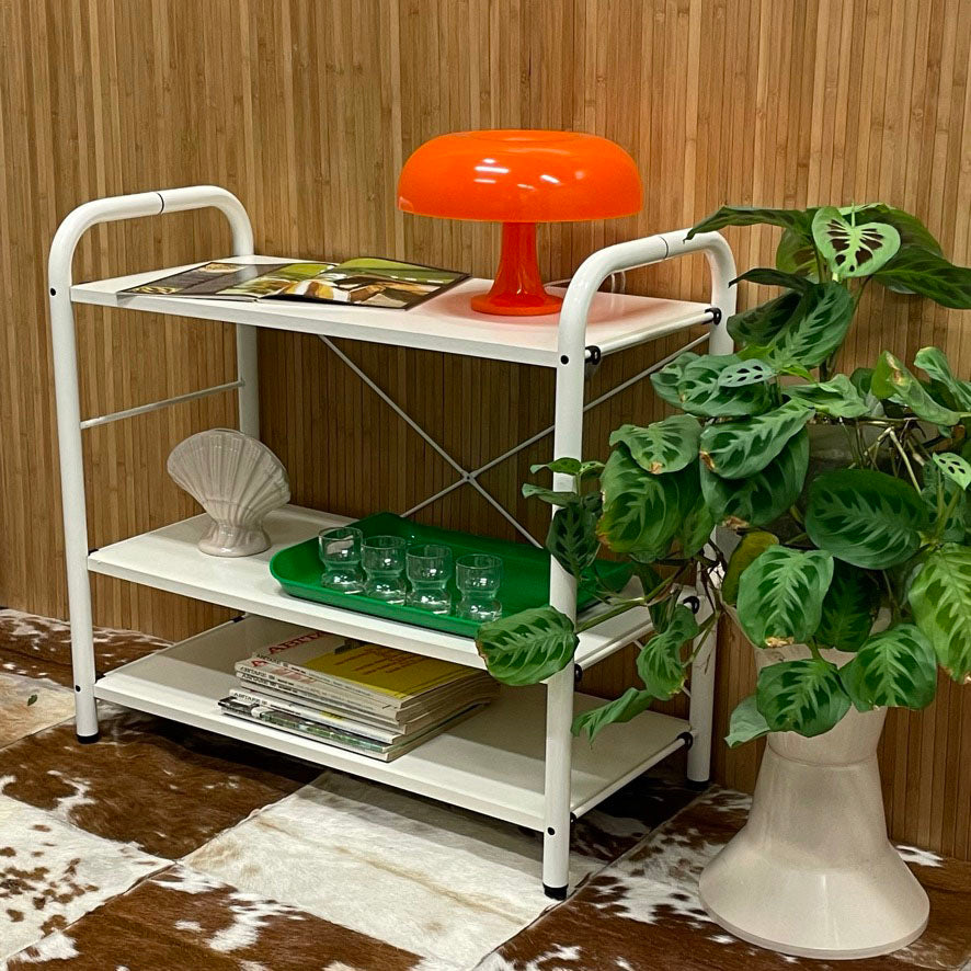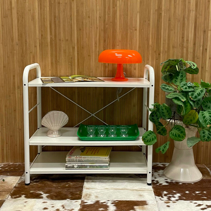Rare and sought after 80s IKEA shelving unit consisting of two ladders with slat shelving. Each shelving piece can be adjusted to size.