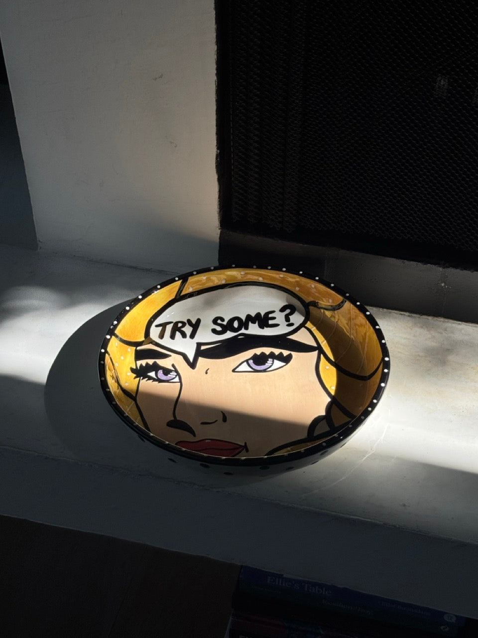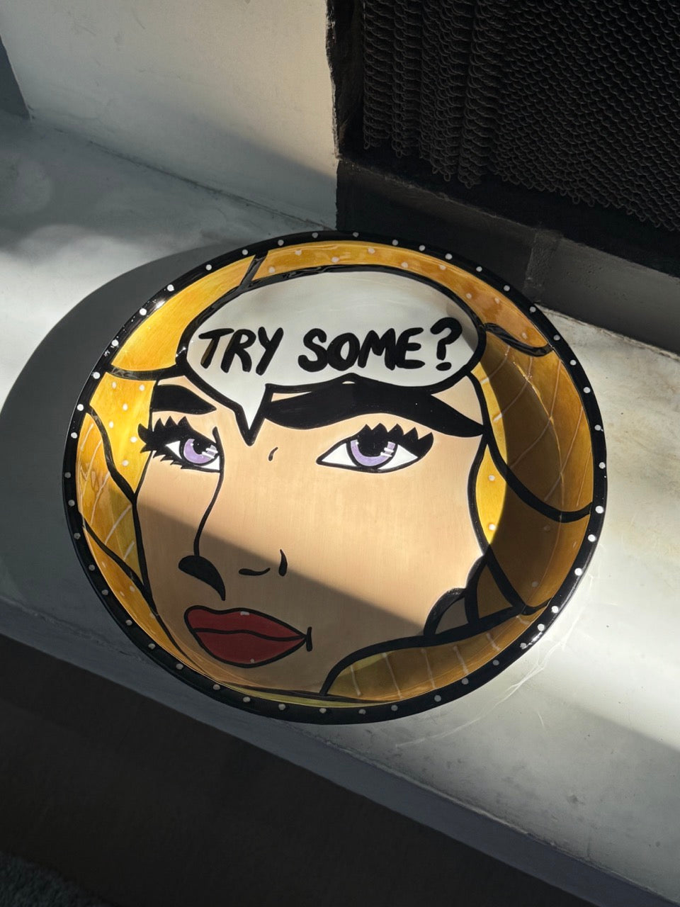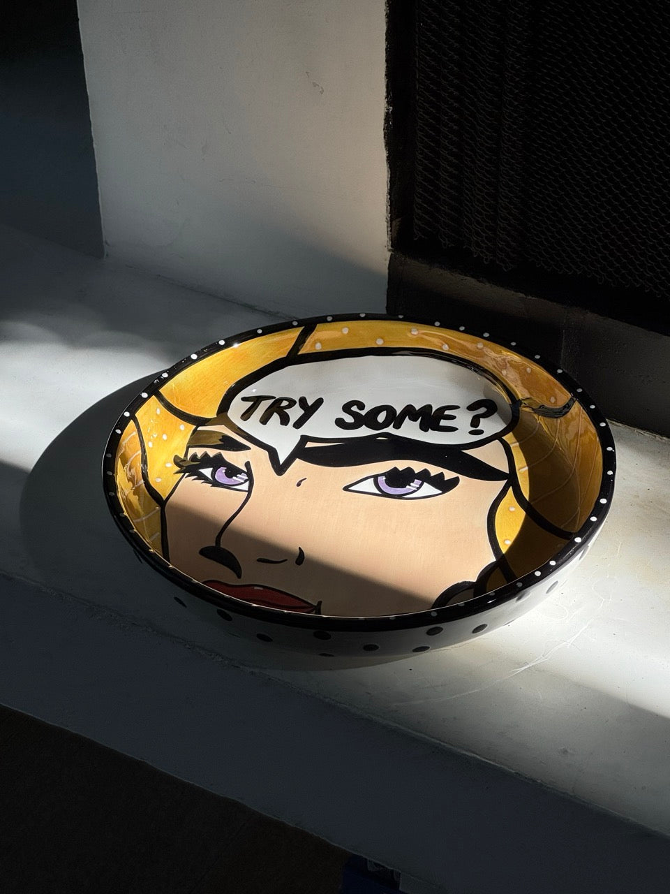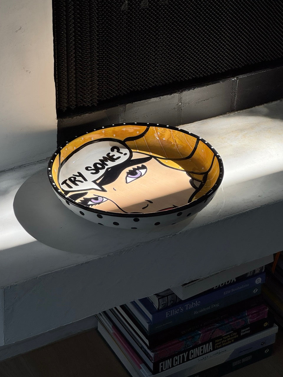 Vintage Pop Art Ceramic Footed Serving Bowl by Joanne Delomba, 1990s