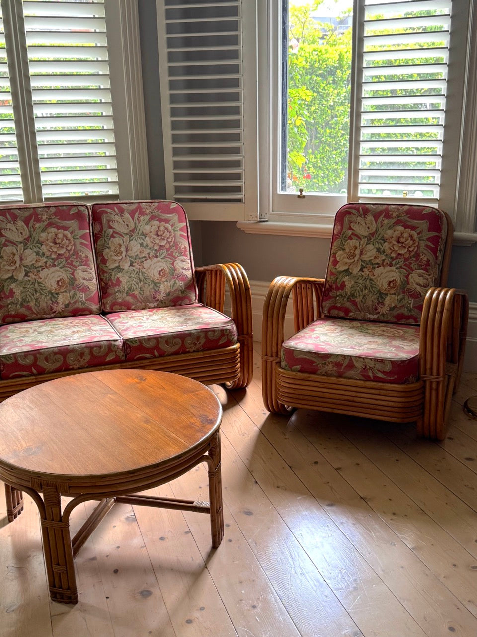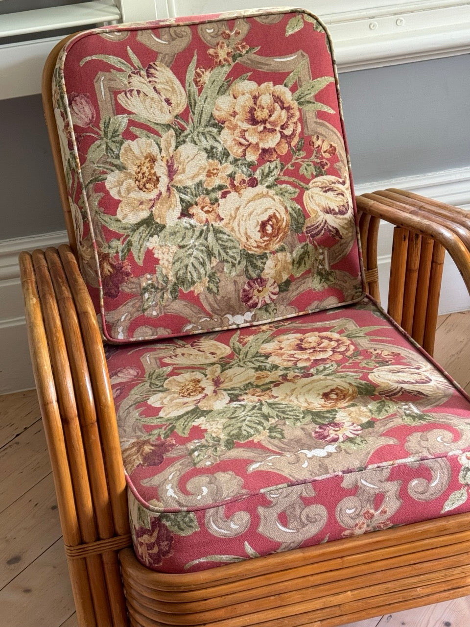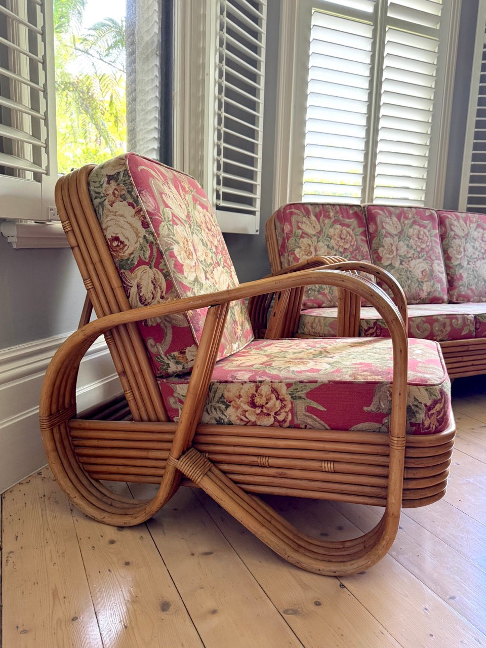 Vintage Rattan Pretzel Lounge Suite with Floral Upholstery
