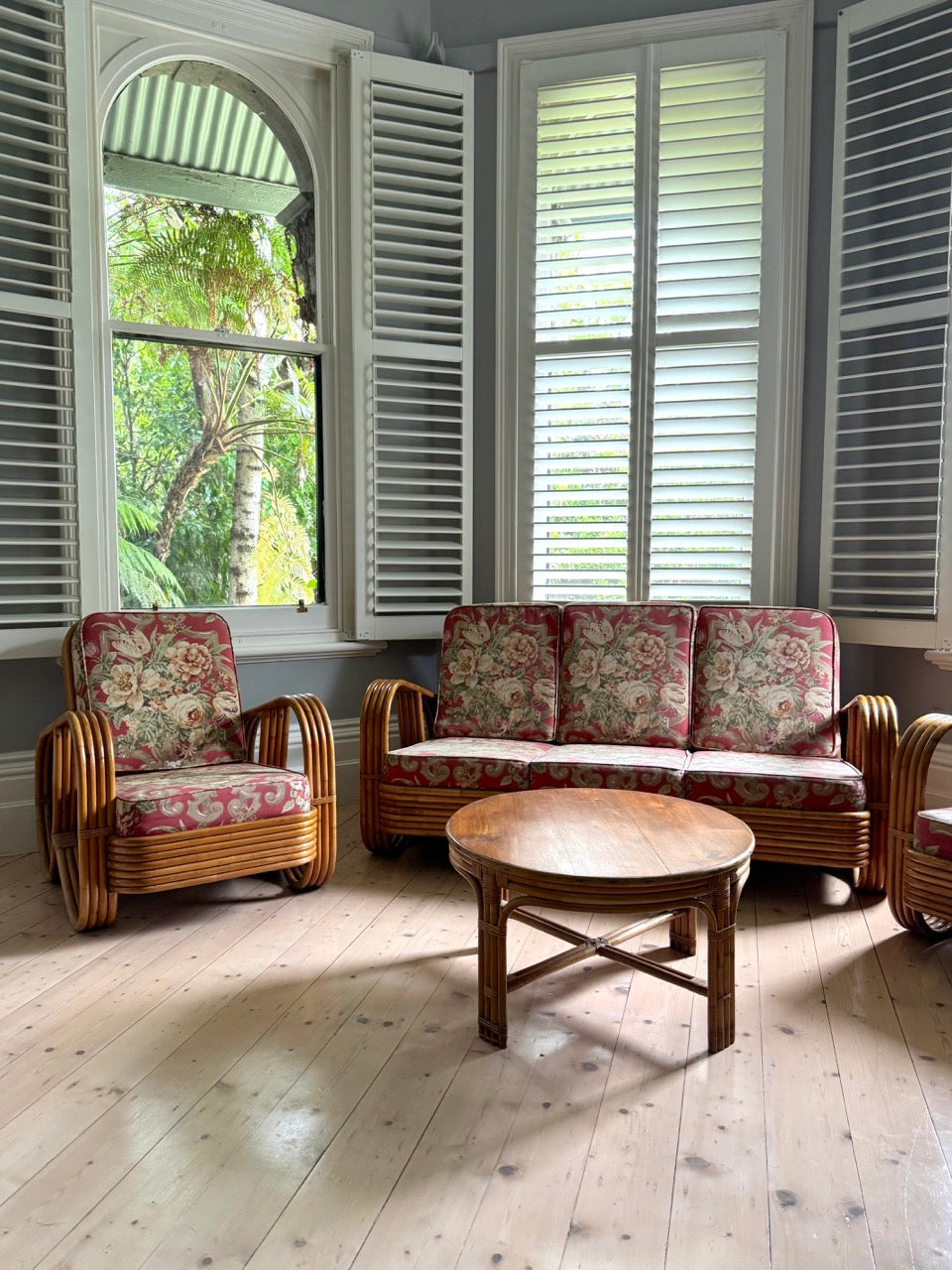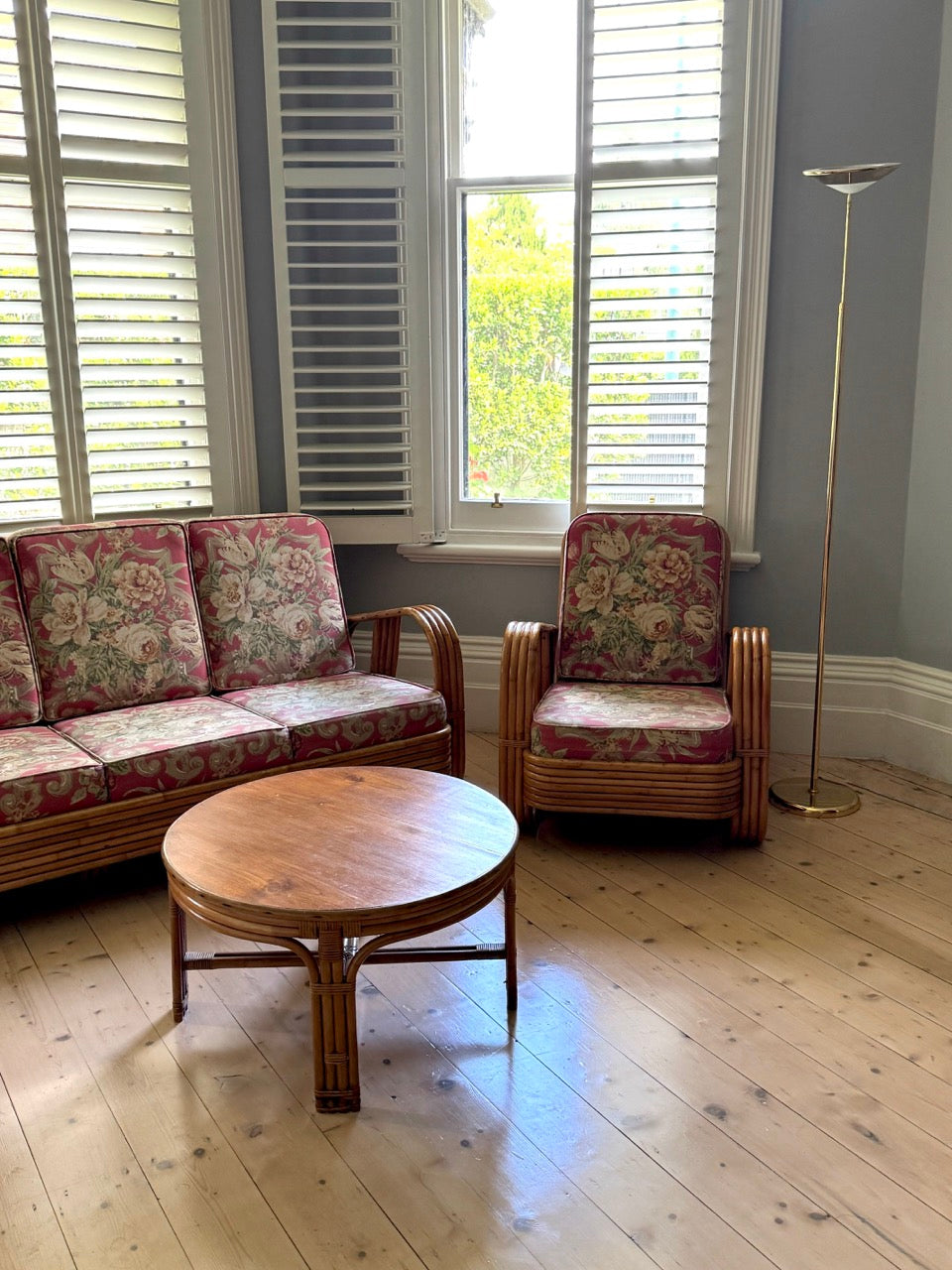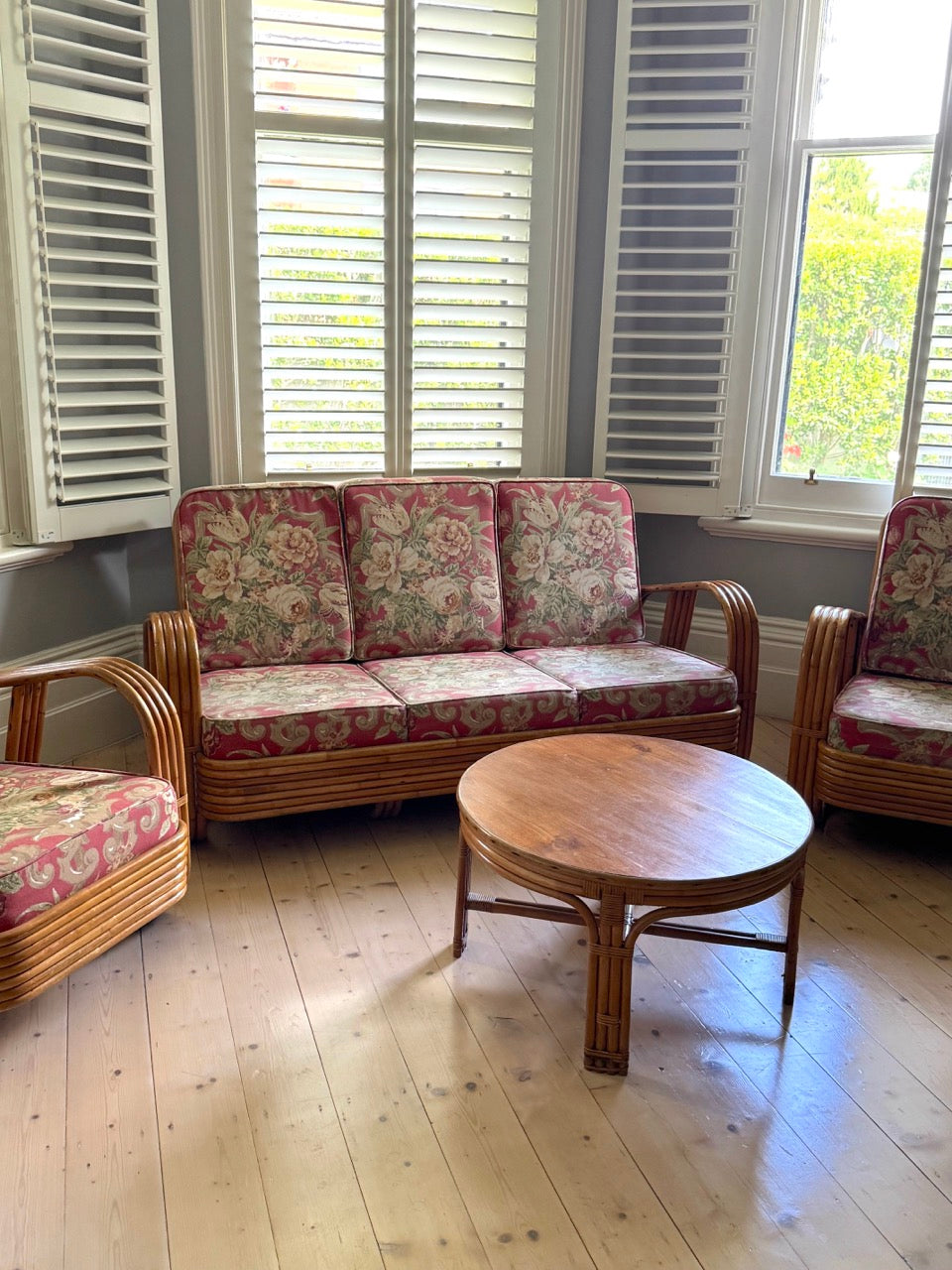 Vintage Rattan Pretzel Lounge Suite with Floral Upholstery