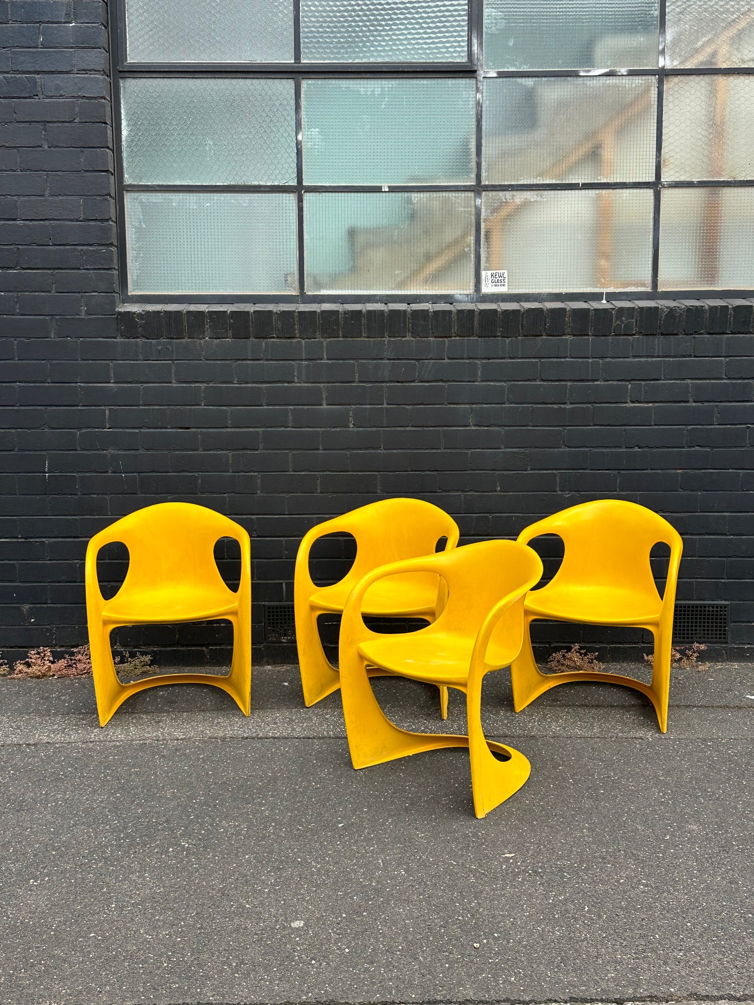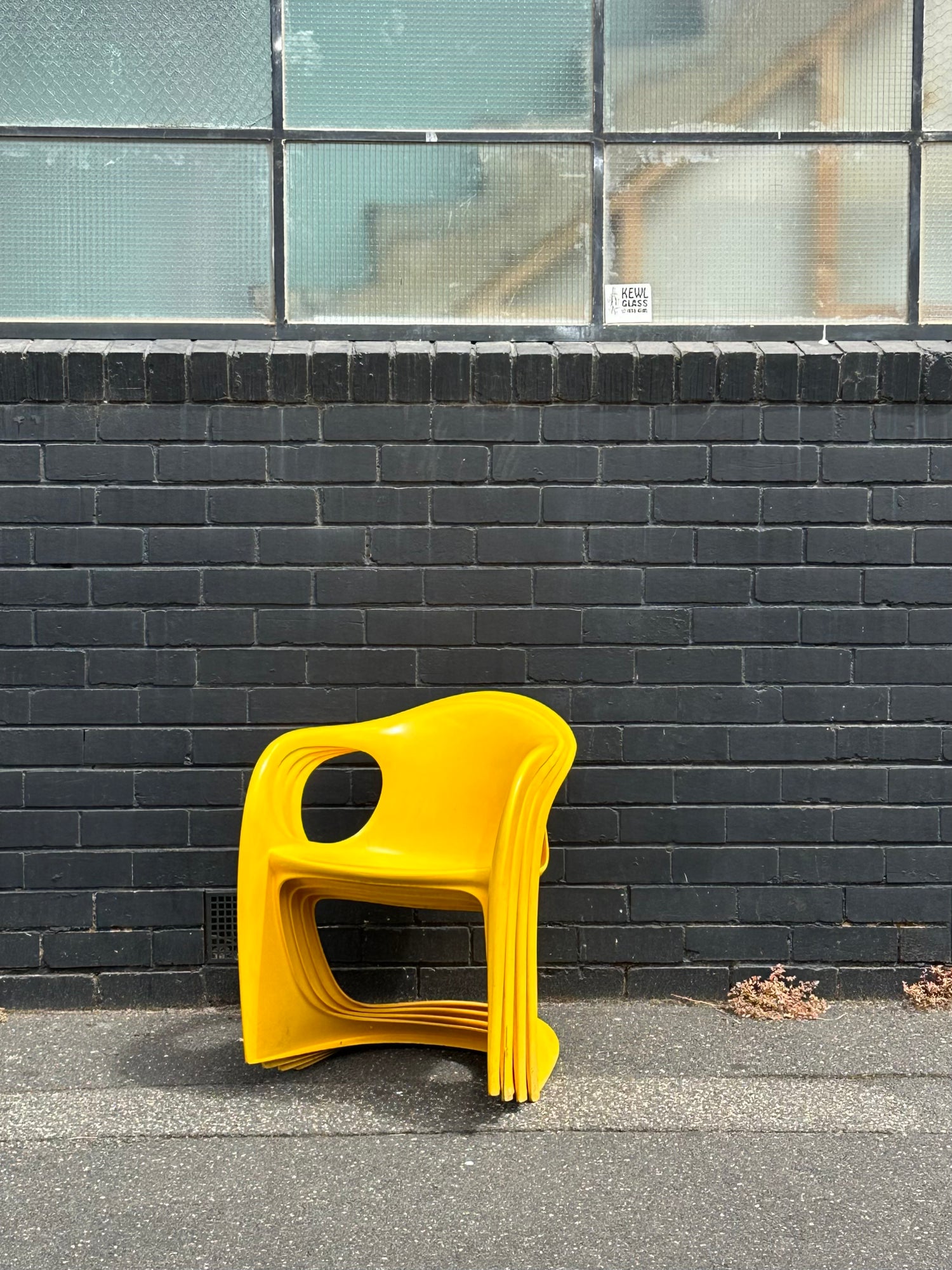 Iconic design, conveniently stackable and very stylish. The yellow is much more hard to come by than the cream / beige ones.