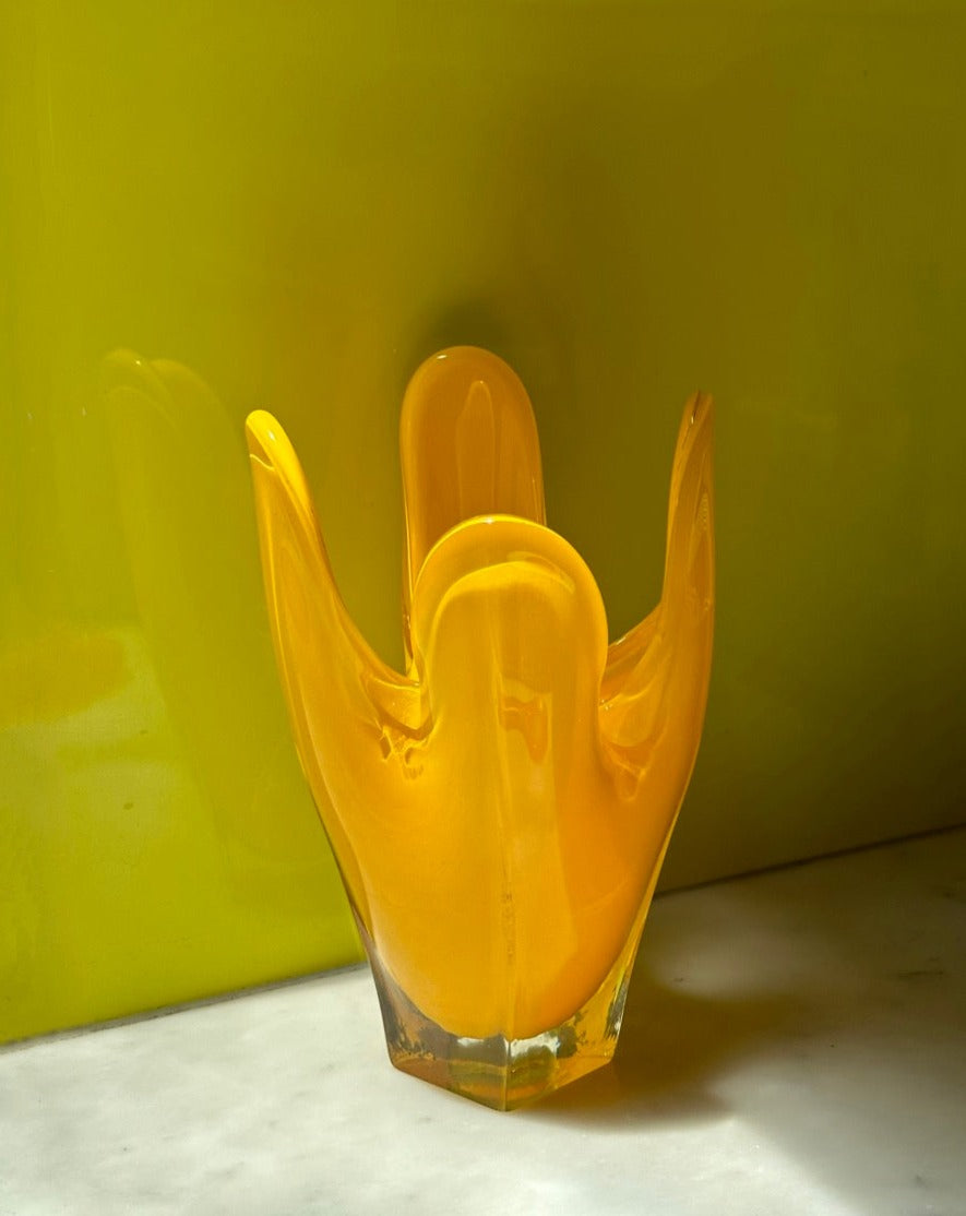 Vintage Yellow Art Glass Vase